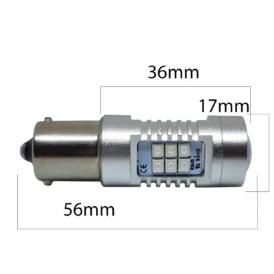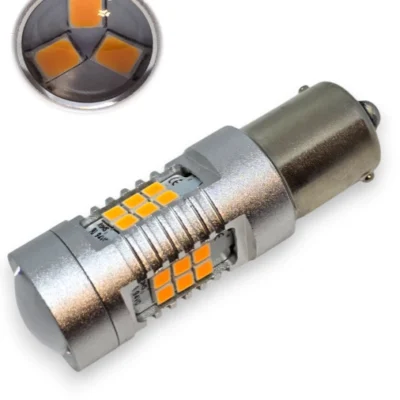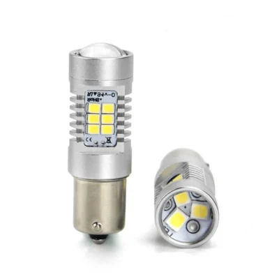 Світлодіодна лампа з цоколем 1156 21SMD 2835 12 V Жовтий з драйвером і лінзою зі зміщеним кріпленням