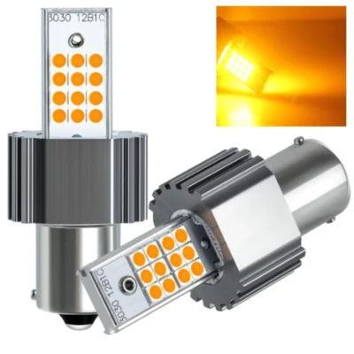 Світлодіодна лампа з цоколем 1156 21SMD 2835 12 V Жовтий з драйвером і лінзою зі зміщеним кріпленням