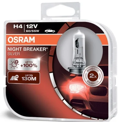 Галогенна автолампа Osram H4 Night Breaker Silver (+100%) 64193NBS-HCB