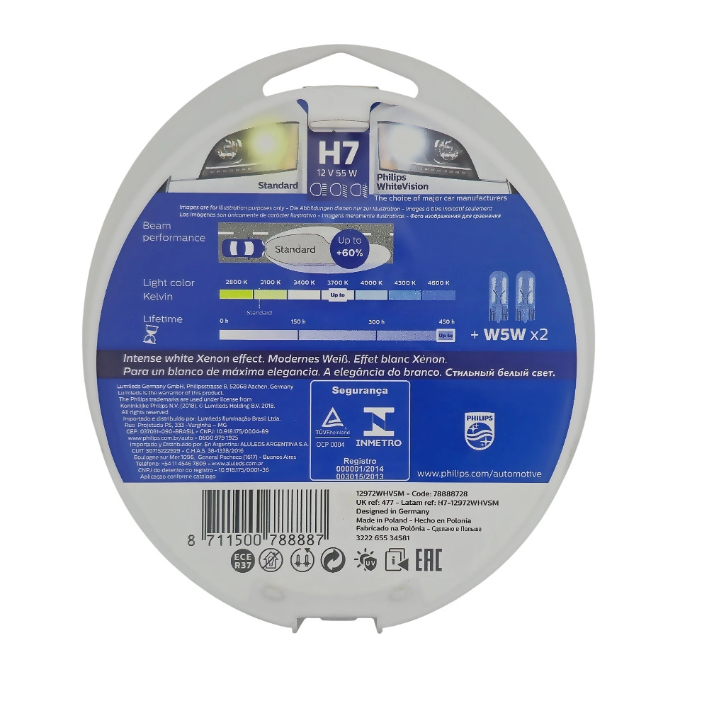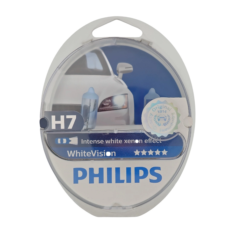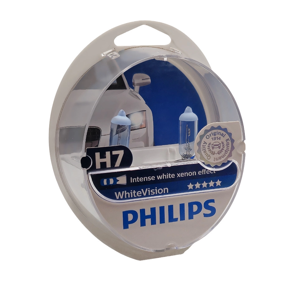 Характеристики: Основні: Виробник: Philips Колір світіння: білий Колірна температура: K Цоколь: H7 Тип лампи: галогенна Кількість ламп в упаковці: 2 Потужність: 55 Вт Призначення: фари головного світла Напруга: 12 В Серія: CristalVision