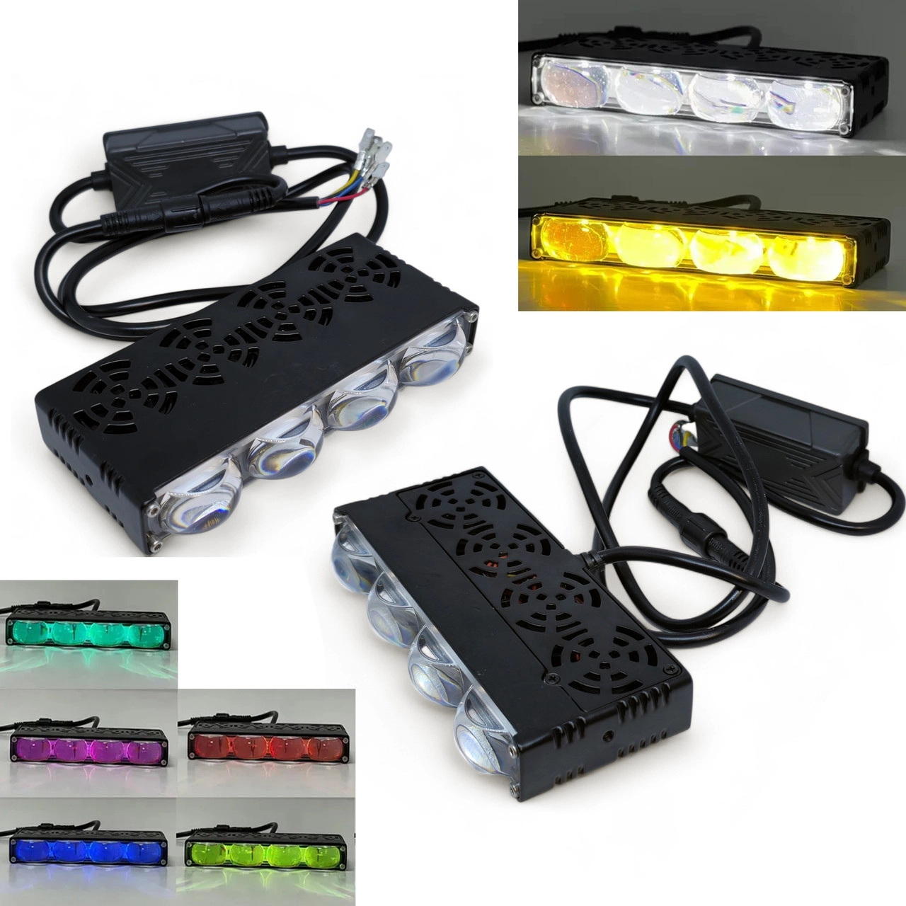 Двоколірні світлодіодні додаткові фари з RGB габаритом 4 LED Lens Mini 12-80V 90W Ближне Дальне Білий Жовтий