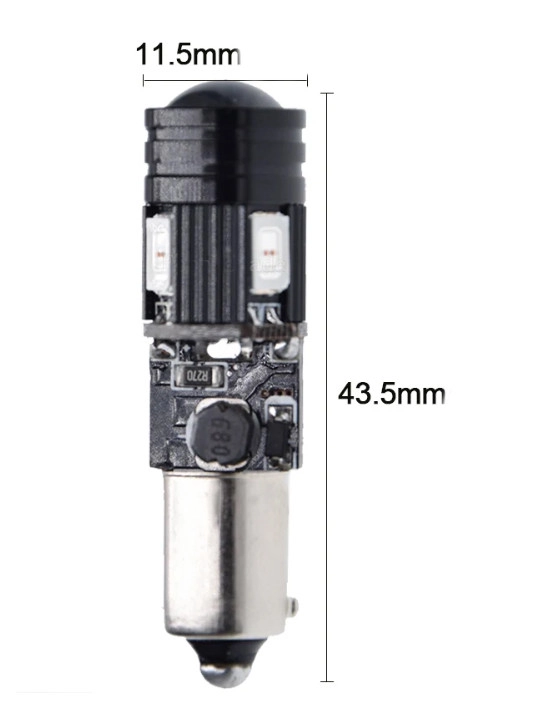 Характеристика: Цоколь: BAY9s H21W (зсув 120 °) Кількість діодів: 4+1 Тип діода: 5630+XBD Водонепроникний: IP67 Напруга: 12V Фактичний люмен: 500Lm Робоча потужність: 5W Особливості: з обманкою