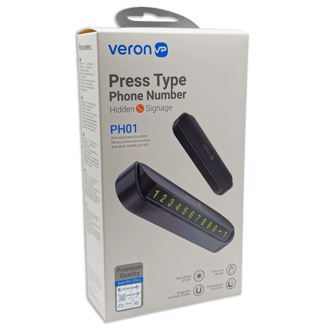 Опис Паркувальний номер Veron PH01 колір чорний Автотабличка надасть можливість власнику автомобіля легко залишити свій номер телефону для зв’язку, який буде чітко видно через лобове скло навіть в умовах недостатнього освітлення. Він стане в нагоді під час паркування та у разі виникнення різних екстрених ситуацій. Модель реалізована у вишуканому дизайні, має компактні розміри та практичну конструкцію. Для її виготовлення використовується міцний ABS пластик, який відрізняється підвищеною стійкістю до навантажень і перепадів температур. Її детально продумана конструкція дозволяє лише одним рухом приховати номер і також легко його відобразити. Характеристики:
