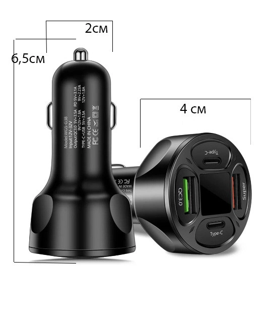 Автомобільна зарядка 2USB+ 2Type-С 12-32V 3.1A LED дисплей з підсвічуванням 66W
