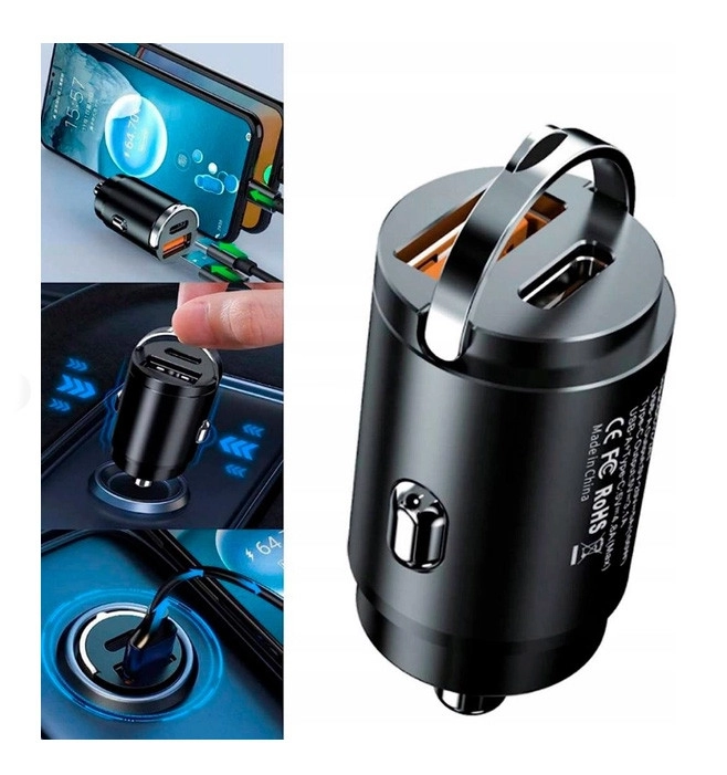 Автомобільна зарядка USB+ Type-С 12-24V 30W mini Швидка зарядка