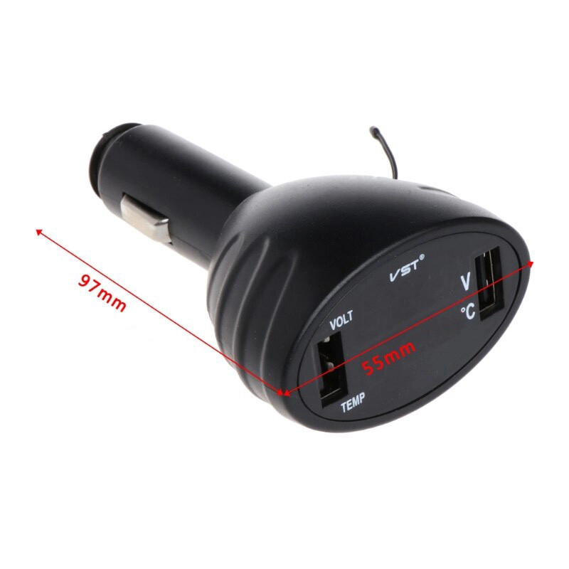 Характеристика: Бренд: VST Модель: 708 Особливості: Вольтметр автомобільний + Термометр Напруга: 12V-24V. Функція заряджання через USB Інтерфейси: 2 USB роз’єми Харчування: від авто прикурювача Розміри: 97*55мм