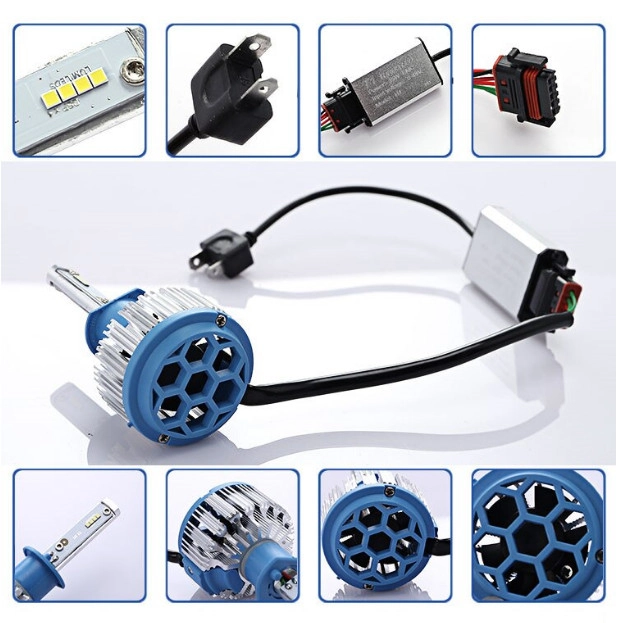 Автомобільні світлодіодні лампи моделі T1 – характеризуються чіткою світло-тіньової кордоном. Тривалість експлуатації забезпечується за рахунок світлодіодним драйвером і вентилятором, які покращують термоиндуцированный контроль за температурою. Легкі в установці, не вимагають особливих знань і відвідувань СТО. Характеристики: Призначення: заміна штатних ламп головного світла автомобіля Цоколь: H1 Модель: Т1 Turbo Тип світлодіодного елемента: Cree Кількість світлодіодів: 8pcs Система охолодження: IP65 Температура світіння: 6000-6500К Світловий потік: 8000 Lm Потужність: 70 Вт Робоча напруга: 12 Вт Термін служби: 50000 годин Кут пучка світіння : 360 Особливості: aviation aluminum 6063, драйвер і вентилятор Робоча температура: від – 40 до 80