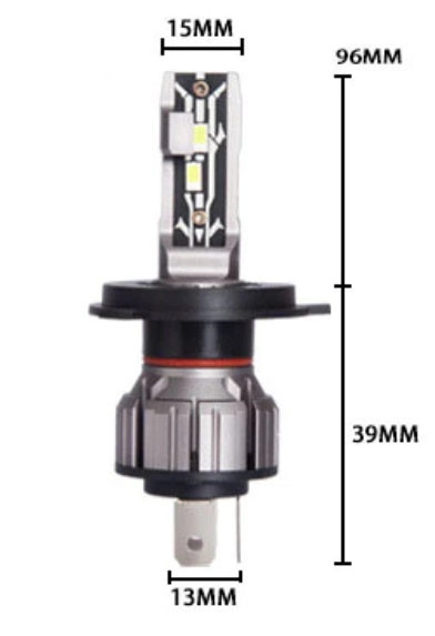 Характеристики: Призначення: заміна штатних ламп головного світла автомобіля Цоколь: H4 Тип світлодіодного елемента: 5530 Кількість світлодіодів: 24 pcs Система охолодження: радіатор Температура світіння: 6000k Світловий потік: 8000 Lm Потужність чіпа: 40 Вт