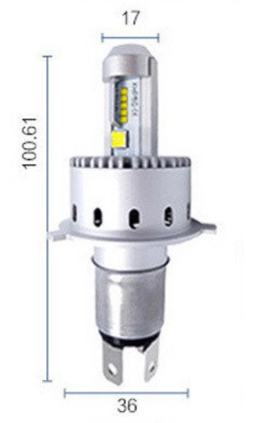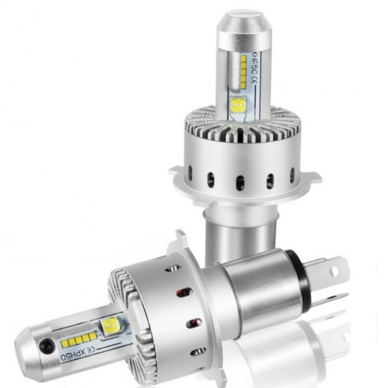 Характеристики: Призначення: заміна штатних ламп головного світла автомобіля Цоколь: H4 Модель: 7S Тип світлодіодного елемента: XHP – 50, 2PCS CREE Система охолодження: IP65 Світловий потік: 8000Lm Термін служби: від 50000 годин Колірна температура: 6500K