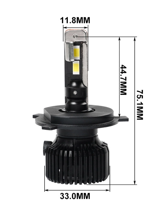 Характеристики: Призначення: заміна штатних ламп автомобіля Цоколь: H4 Модель: P30 Тип світлодіодного елемента: CSP Кількість світлодіодів: 24pcs Система охолодження: IP65 Температура світіння: 6500К Потужність: 70W