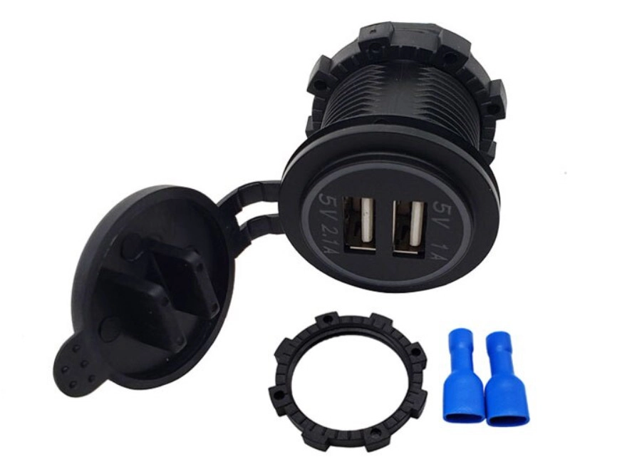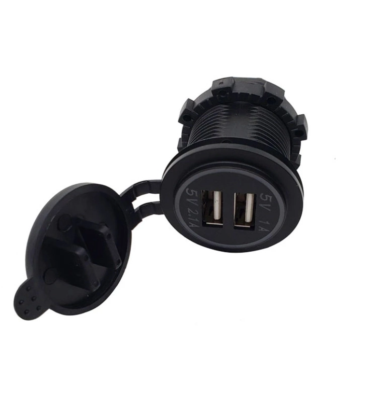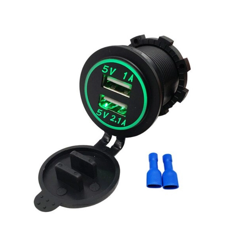 Зарядний пристрій 2хUSB — розетка з двома портами USB для автомобілів. Харакеристика: Захист від перегріву та короткого замикання Вхід: 12 В-24 В Вихід: 5 В 2,1 А Матеріал: АБС+метал Габарити: 54 х 37х 29 мм Колір підсвічування: зелений Функції: Захист від короткого замикання/перегрівання. USB-розетка 5В до 2,1А