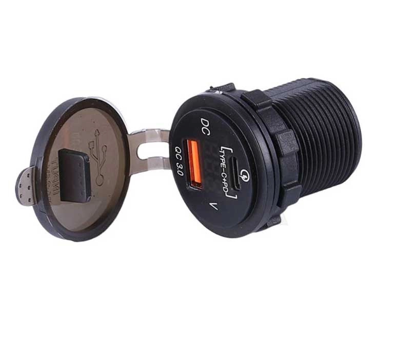 Зарядний пристрій має врізну розетку з двома портами: USB QC 3.0 и Type-C+PD Харакеристика: Вхідна напруга – 12/24 В; Розміри – 41*36*28 мм; Колір корпусу – чорний; Колір індикації – червоний; Матеріал: АБС+метал. Ціна за 1 шт.