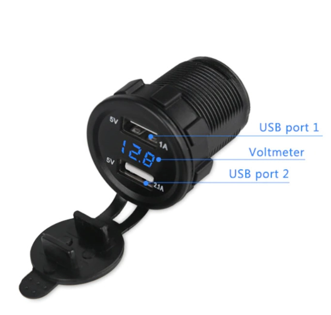 Зарядное устройство USB — врезная розетка с 2 портами USB для автомобилей. Характеристика: Тип: Автомобильное зарядное устройство USB Материал: ПК Количество: 1 шт. Цвет изделия: черный Измеритель напряжения цифровой: дисплей Отображение напряжения: синий светодиодный дисплей Входное напряжение: 12-24 В Выходной ток: 3,1 А (2,1 А + 1 А) Габариты: 54 х 37х 29 мм Функции: Вольтметр