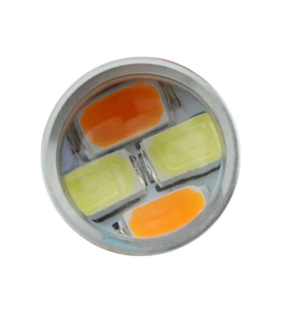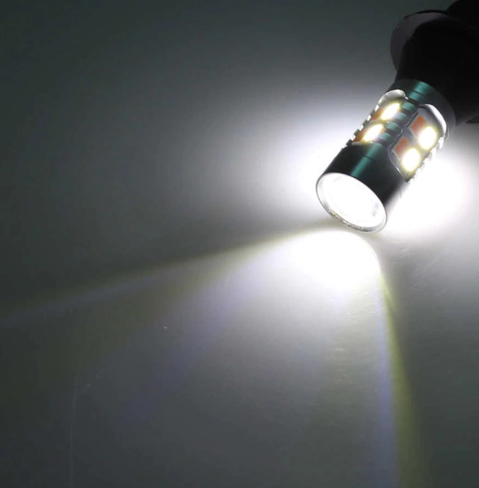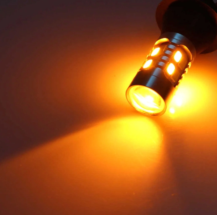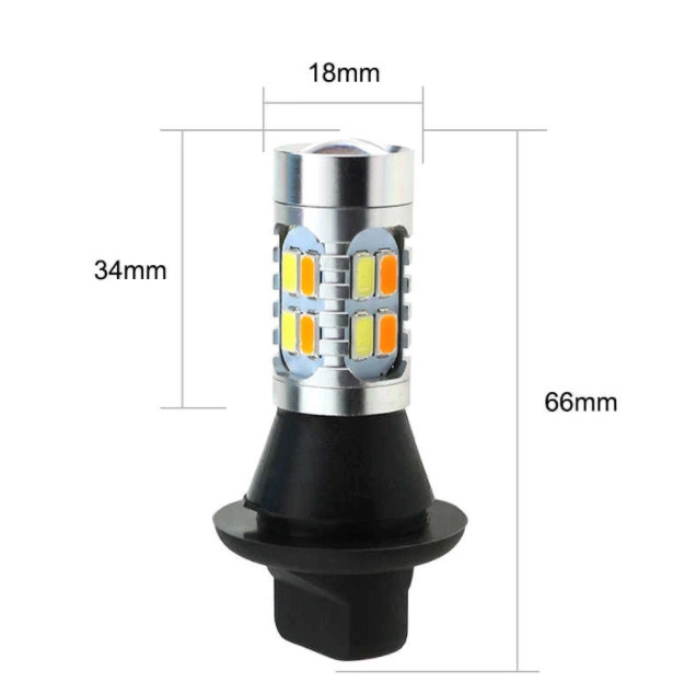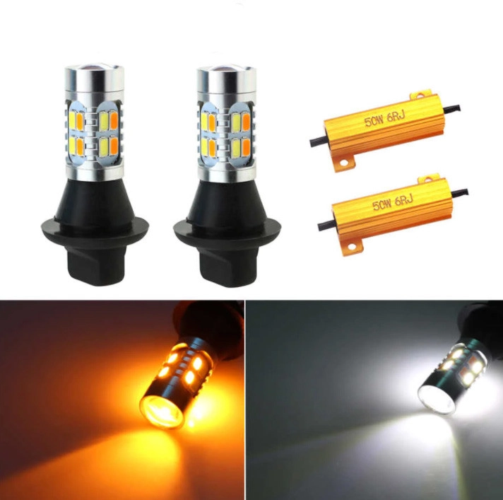 Денні ходові вогні ДХО у поворотники з режимом функцією повороту Денні ходові вогні, ДХО у поворотники 2 в 1 Світлодіодні лампи в поворотник із ДХО стануть чудовим рішенням для тих, хто хоче встановити денні ходові вогні без розбирання фар. Ці лампочки ставляться замість штатних із цоколем BAU15S або BA15s (він же PY21W) у передні поворотники з прозорими склами. Мають постійне біле світіння відповідно до всіх правил, а під час вмикання повороту починають блимати жовтогарячим кольором. Можуть використовуватися як додатковий задній хід у ліхтарі поворотника. Ці лампи чудово підійдуть для сертифікації американських авто. Переваги ламп у поворотники 2 в 1 перед іншими ходовими вогнями: Не змінюють зовнішній вигляд автомобіля. Під’єднуються без втручання в проведення. Не вимагають дорогої розбирання фар. Роблять сигнал повороту яскравішим і помітнішим. Споживають набагато менше електроенергії, порівнюючи з ближнім або дальнім світлом. Денні ходові вогні в поворотники мають ефективне світлорозподілу. Завдяки навантаженому резистору блимають із тією самою частотою, що й звичайні лампи. Встановлення комплекту ламп не забере багато часу та за складності можна порівняти з заміною звичайних лампочок. Система ДХО та поворотник в одній лампі виготовлена із застосуванням передових технологій автомобільного освітлення. Корпус ламп виготовлений з алюмінію. Універсальний гумовий цоколь для встановлення практично в будь-які автомобілі. Характеристики: Тип цоколя — 1156 (PY21W — BAU15S) Тип діода: 5630 Кількість діодів: 20smd Робоча напруга — 12 вольтів Споживана потужність — 5/21 Ватів Температура світіння ДХО — 6000 кельвінів Наявність обманки — є Вбудовані стабілізатор Робоча температура — від -50 до +70 °C Матеріал — алюміній Комплектація: 2 х світлодіодні лампи дхо в поворотники, 2 х навантажних резистори та комплект проведення під’єднання