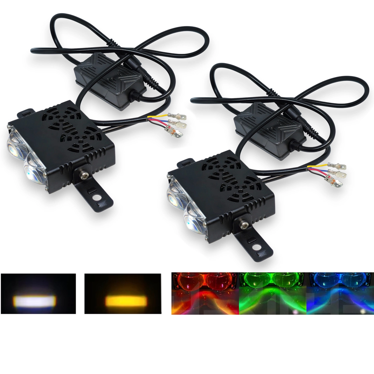 Двоколірні світлодіодні додаткові фари з RGB габаритом 2 LED Lens Mini 12-80V 90W Ближне Дальне Білий Жовтий