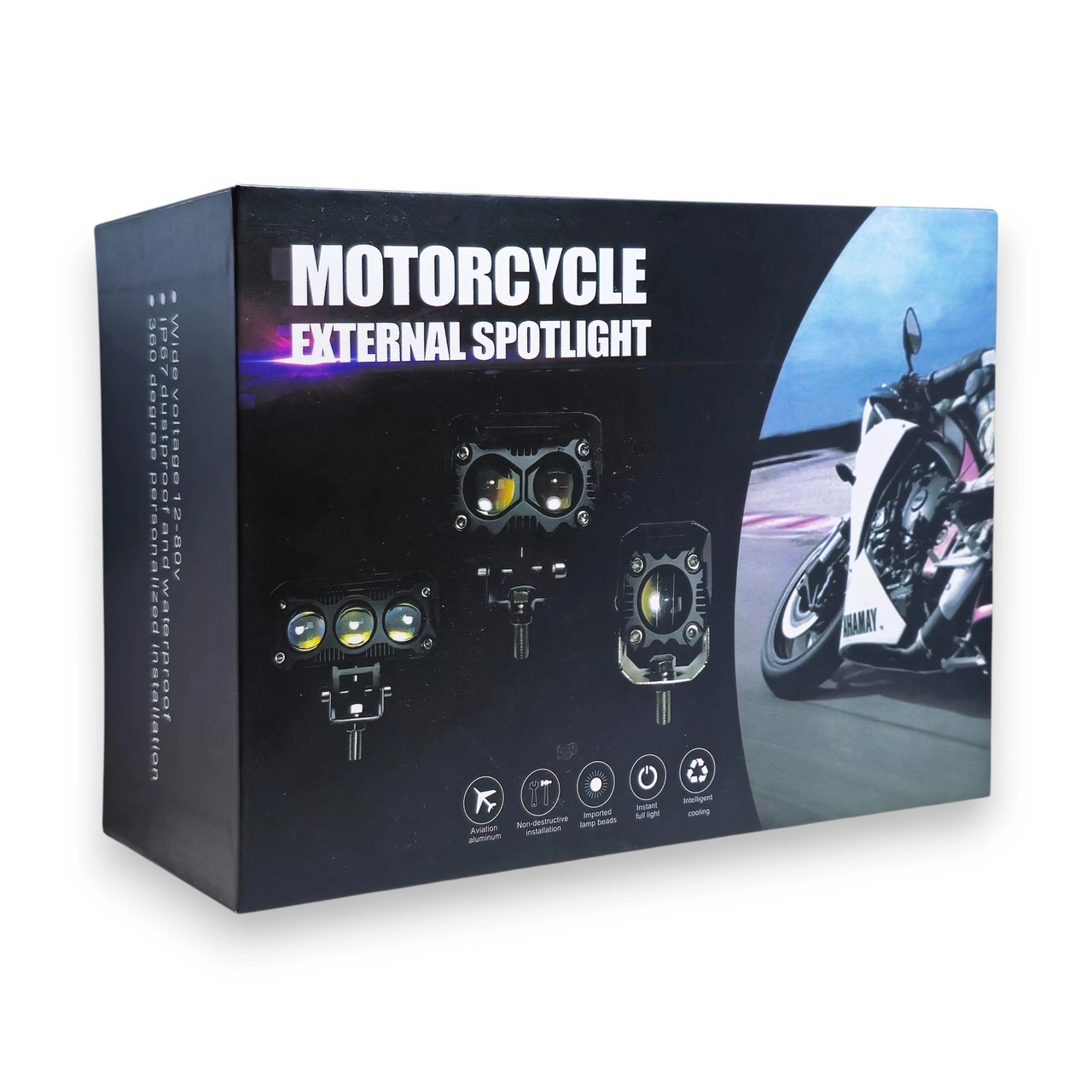 Характеристики: Вид: додаткові фари Тип: Ближнє/Дальне світло Колір світла: білий/жовтий (дальне– білий, ближній – жовтий) Температура світла: 3000K/6000K Кількість діодів: 2 pcs на одній фарі Світловий потік: 4500LM/фара Потужність: 80W Напруга: 12-80V Розмір: 76*47мм