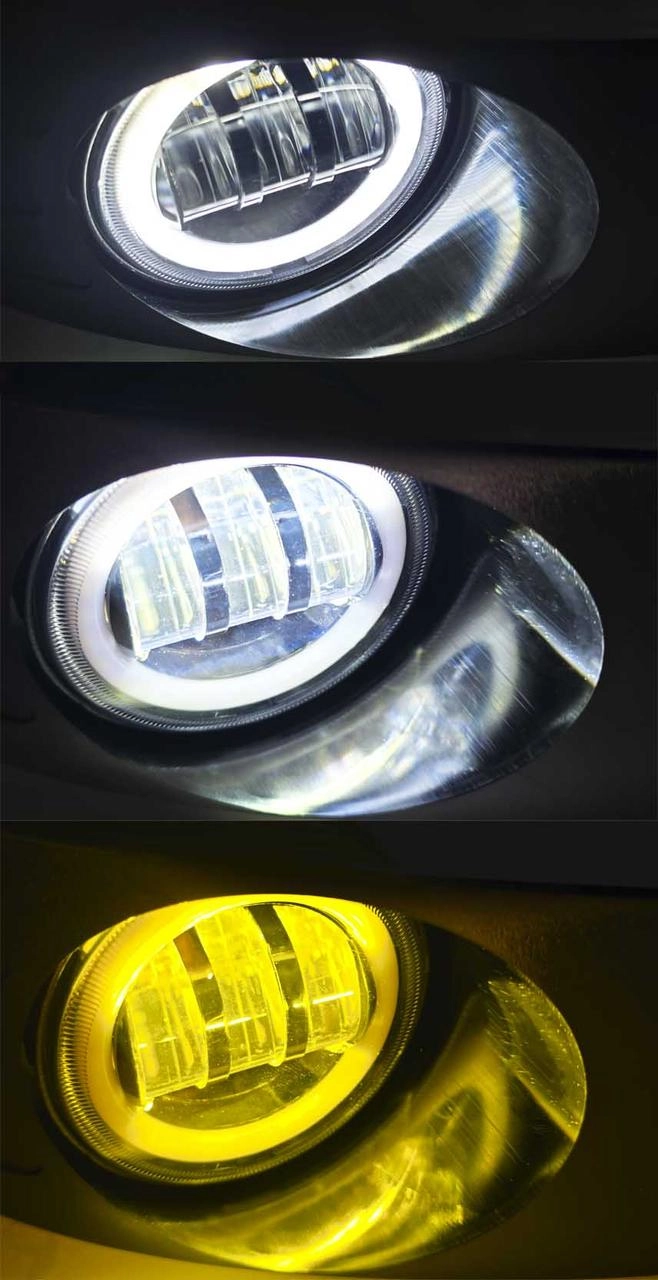 Двоколірні світлодіодні протитуманні фари для Skoda Octavia 3 лінзи Біле Жовте світло ДХО