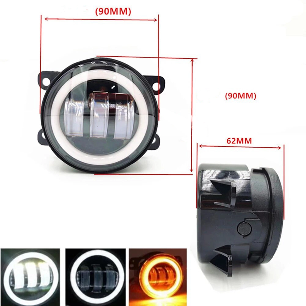 Двокольорові протитуманні фари 3 лінзи з ангельськими вічками 90мм Габарит Поворот 3,5 дюйма Білий Жовтий