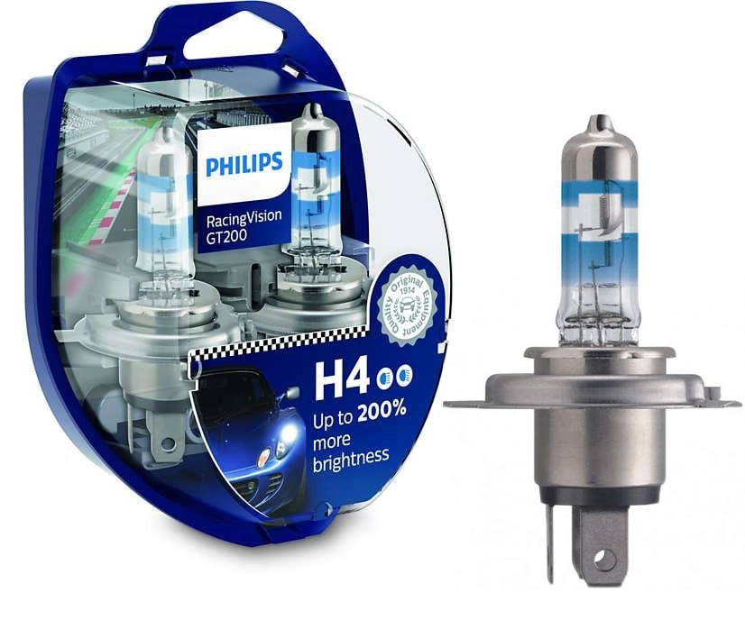 Галогенна автолампа PHILIPS H4 RacingVision 12342RGTS2 GT200 +200%