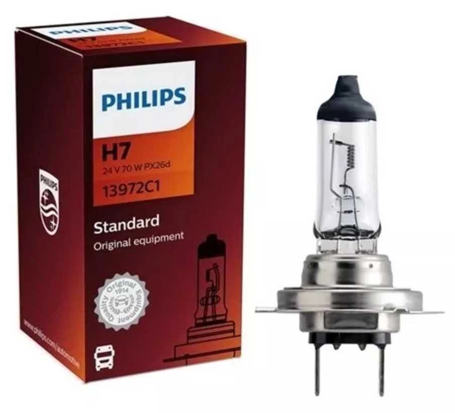 Характеристики: Виробник: PHILIPS Цоколь: H7 Модель: 13972C1 Потужність: 70W Тип запчастини: оригінальна Напруга: 24B Упаковка: картон (1 лампа)