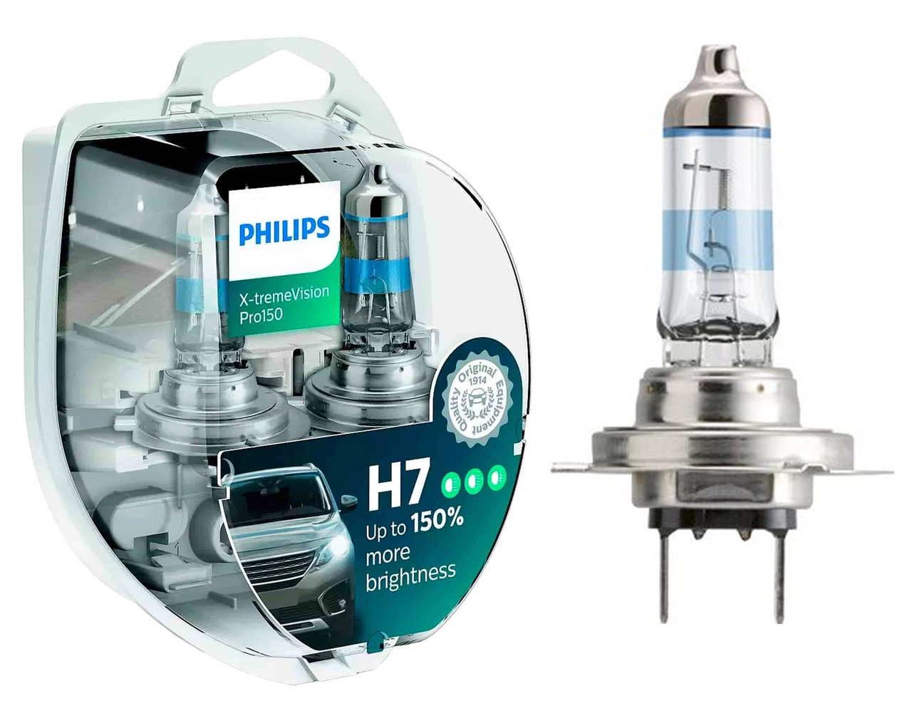 Характеристики: Виробник: PHILIPS Цоколь: H7 Модель: H7 X-tremeVision Pro150 Країна виробник: Німеччина Тип запчастини: оригінальна Напруга: 12B Яскравість: 1500Lm Упаковка: HardDuopet (2 лампи)