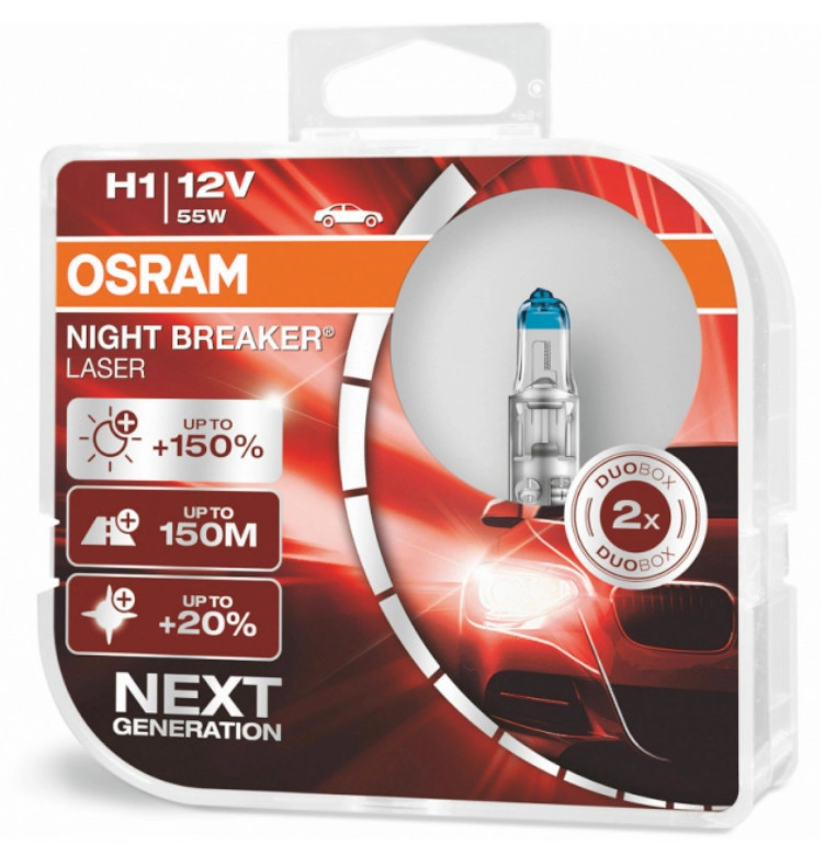 Характеристики: Виробник: Osram Цоколь: H1 Модель: 64150NL-HCB Країна виробник: Німеччина Споживана потужність: 55W Тип запчастини: оригінальна Напруга: 12B Упаковка: HardDuopet (2 лампи)