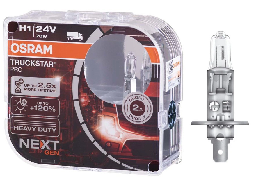 Галогенна лампа Osram H1 TRUCKSTAR PRO NEXT GEN 70W 24V 64155TSP HCB Up to 120%