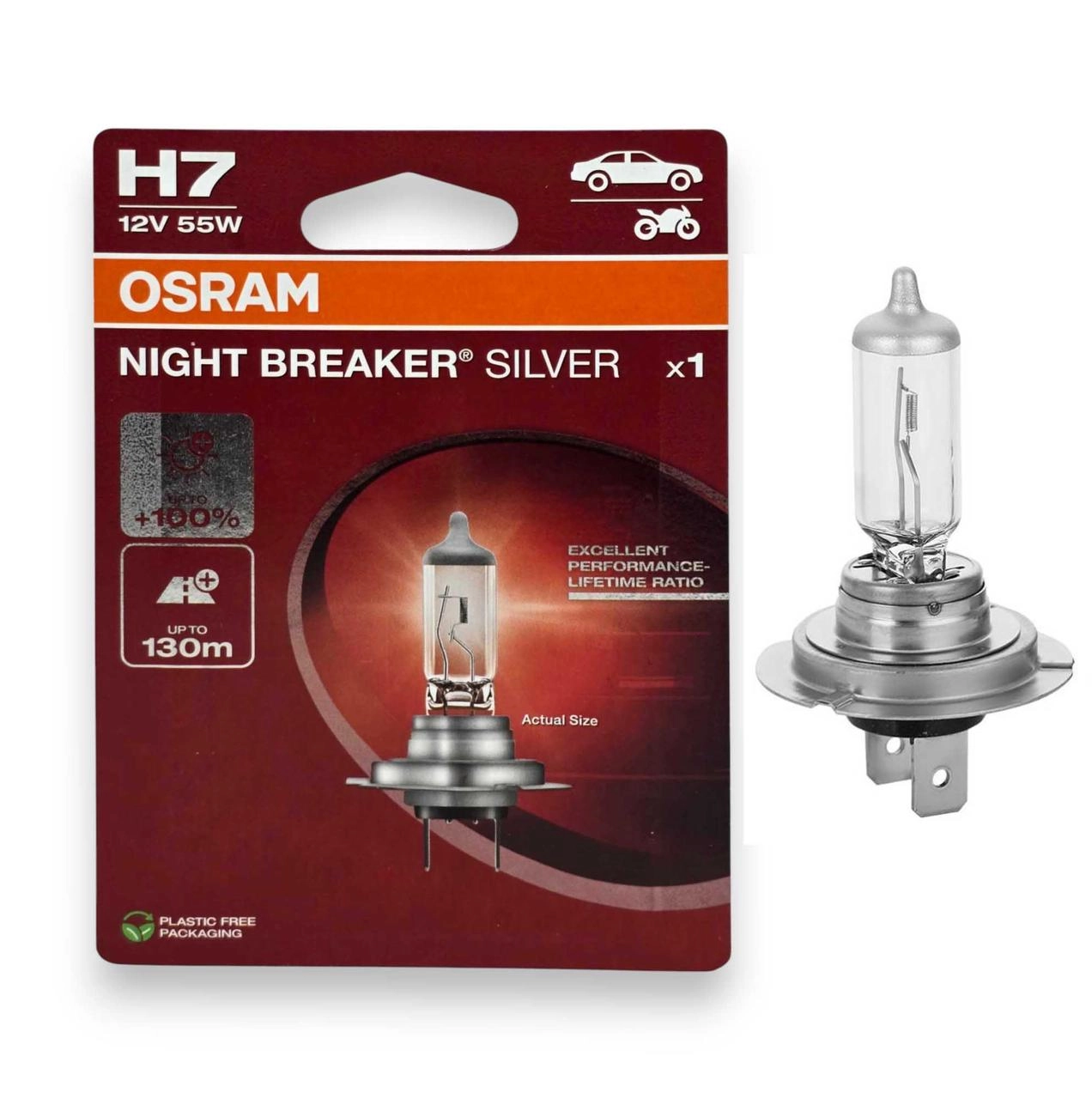 Характеристики: Виробник: Osram Цоколь: H7 Модель: 64210NBS-01ВL Країна виробник: Німеччина Споживана потужність: 55W Тип запчастини: оригінальна Напруга: 12V Упаковка: блістер (1 лампа)
