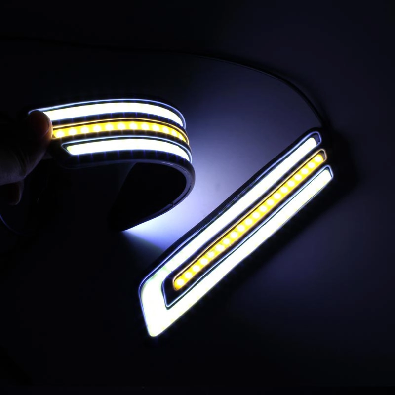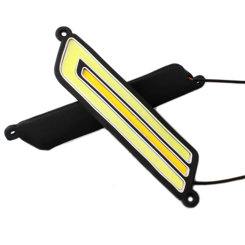 Характеристики: Тип діода: COB Колір світіння: Білий / Жовтий Тип діода: COB Напруга: 12V Потужність: 12W (по 6W) Тип матеріалу: силікон Призначення: Для денних ходових вогнів, протитуманних ліхтарів, гальмівних вогнів, задніх ліхтарів, декоративних вогнів, номерyих знаків та інше. Легко встановити на будь-якому транспортному засобі.
