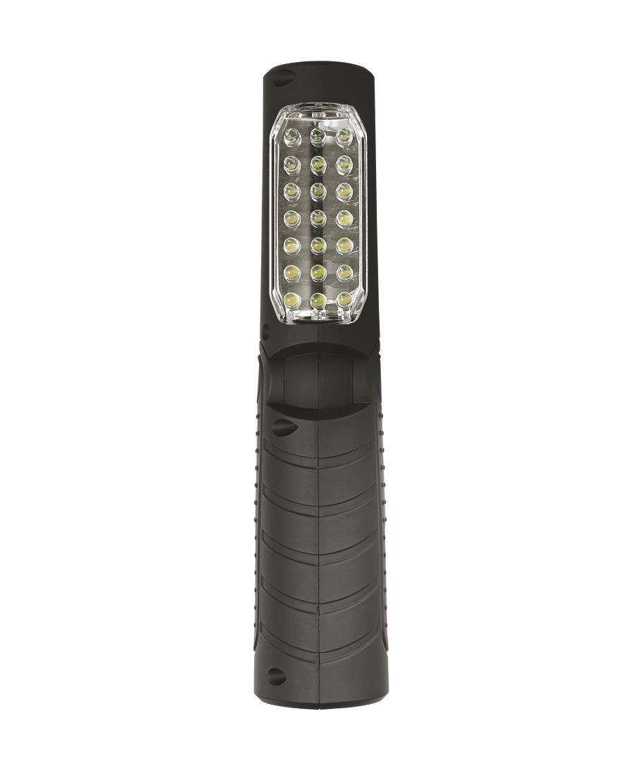 Інспекційний ліхтар із поворотним механізмом LEDinspect FOLDABLE 80 – надійний та практичний інструмент на всі випадки життя. Він стане вам у нагоді і в автомобілі, і в гаражі, і вдома. Працює ліхтар від акумулятора, а заряджається від адаптера або прикурювача в автомобілі. Бездоганне освітлення забезпечують більше 20 потужних світлодіодів з тривалим терміном служби. Колірна температура LEDinspect FOLDABLE 80 досягає 6000 K, а освітленість – 1200 лк з відстані 0,5 м, що робить цей портативний ліхтар просто ідеальним помічником в різних ситуаціях. Характеристика: Номінальна потужність: 1,5 Вт Температура кольорів: 8000 K Світловий потік: 80 лм Вага: 442,00 g