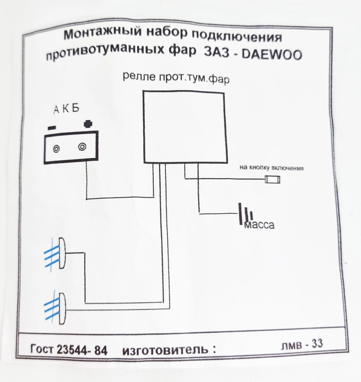 Комплект дротів для підключення птф Ланос, Сенс daewoo lanos sense