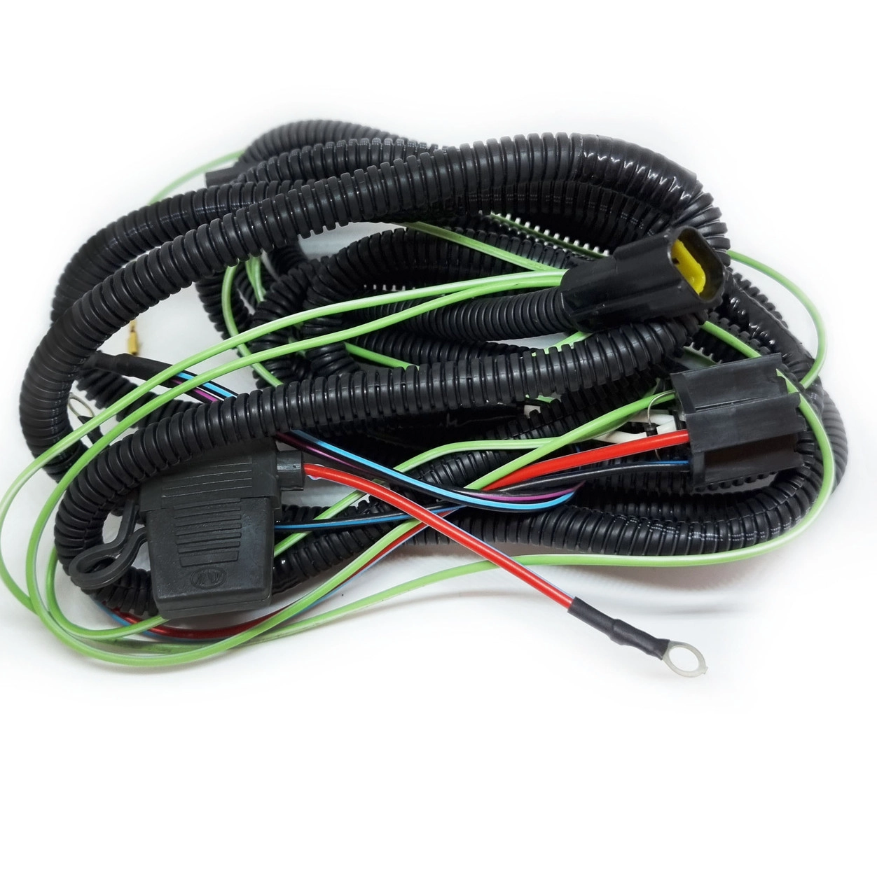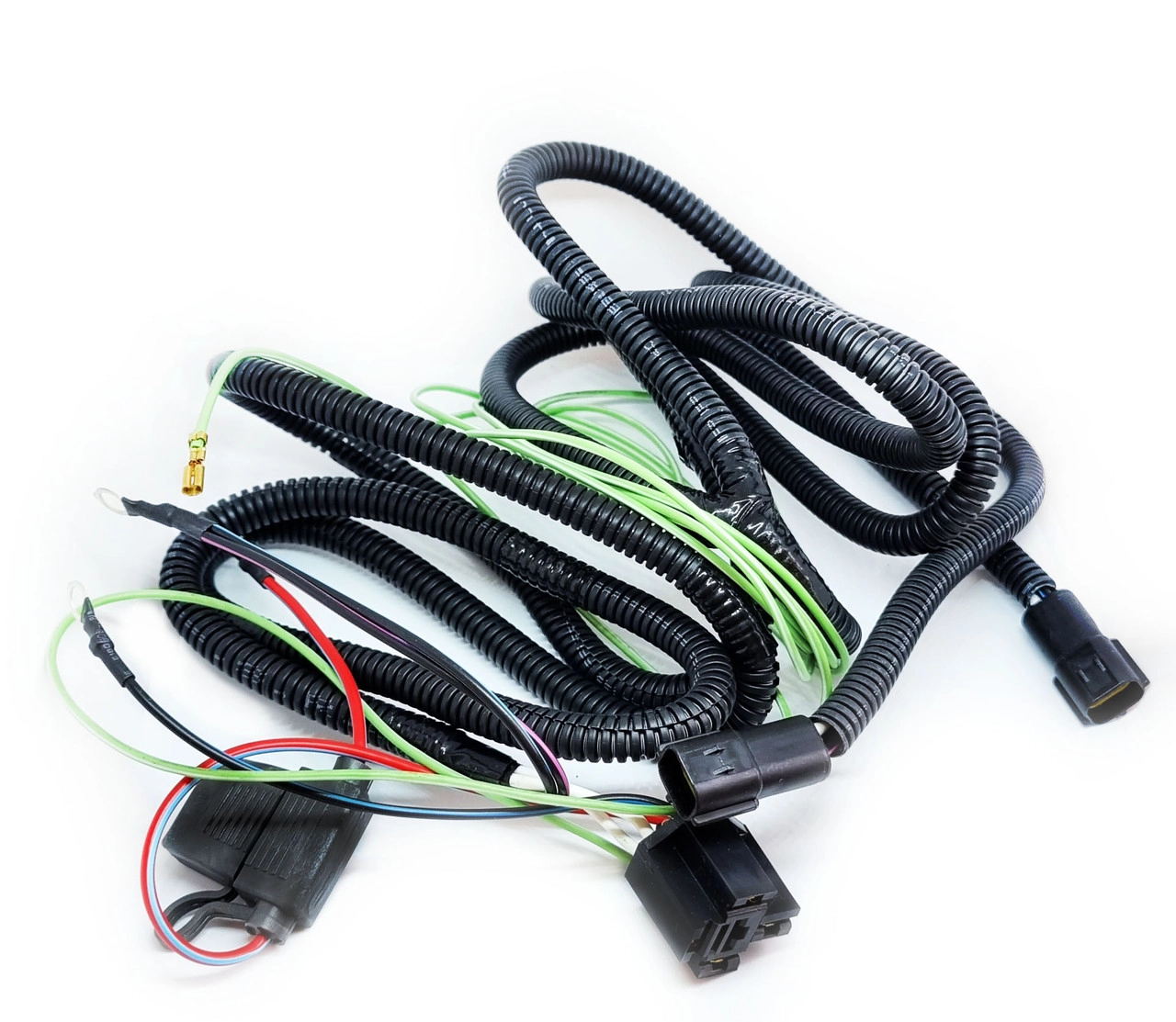 Комплект дротів для підключення протитуманних фар для автомобілів Ланос, Сенс з об’ємом двигуна 1.3; 1.4; 1.5; 1.6; Джгут ПТФ Ланос у гофрі Опис: готовий джгут підключення протитуманок Матеріал жгуту – Обмотка ПВХ – Провід мідь. – ДФР