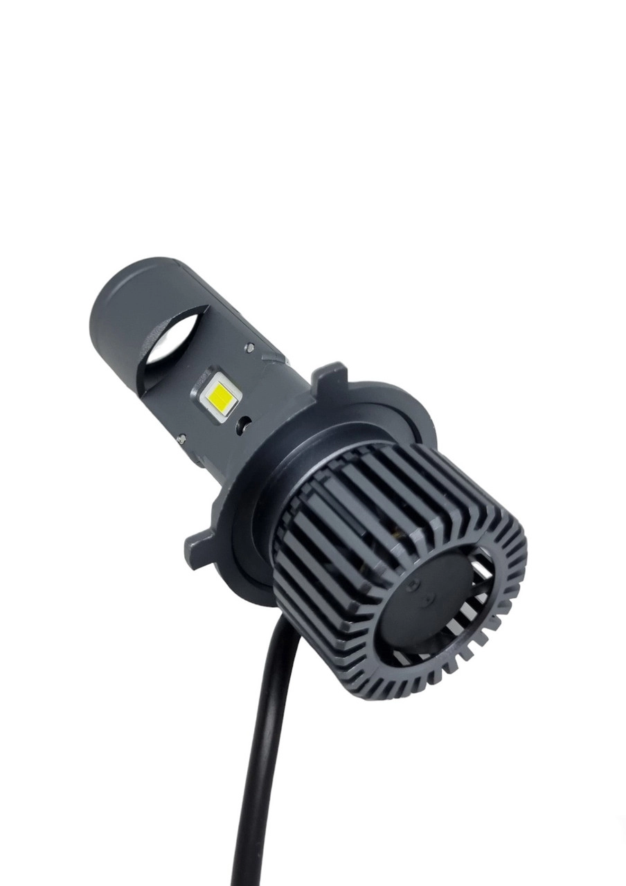 Характеристики: Цоколь: H4 Модель: D13 GT4 Тип світлодіода: CSP 3570 Температура свічення: 6000K Потужність: 37Вт Вольтаж: 9-32V Система охолодження: активна розміри: діаметр лінзи 24мм діаметр радіатора 35мм довжина лампи 100мм, довжина радіатора 23мм