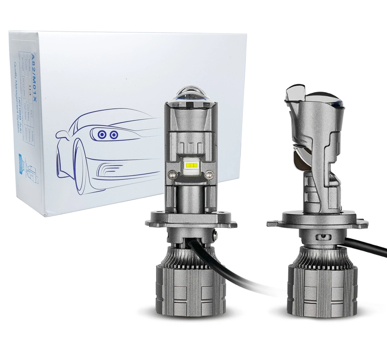 Характеристики: Цоколь: H4 Модель: M01 Тип світлодіодного елемента:CSP 3570 Кількість світлодіодів: 6 світлодіодних мікросхем +3 додаткові світлодіодні мікросхеми Максимальна температура: 6000K Потужність: 48Вт Напруга: 9-24В