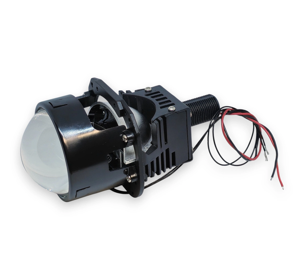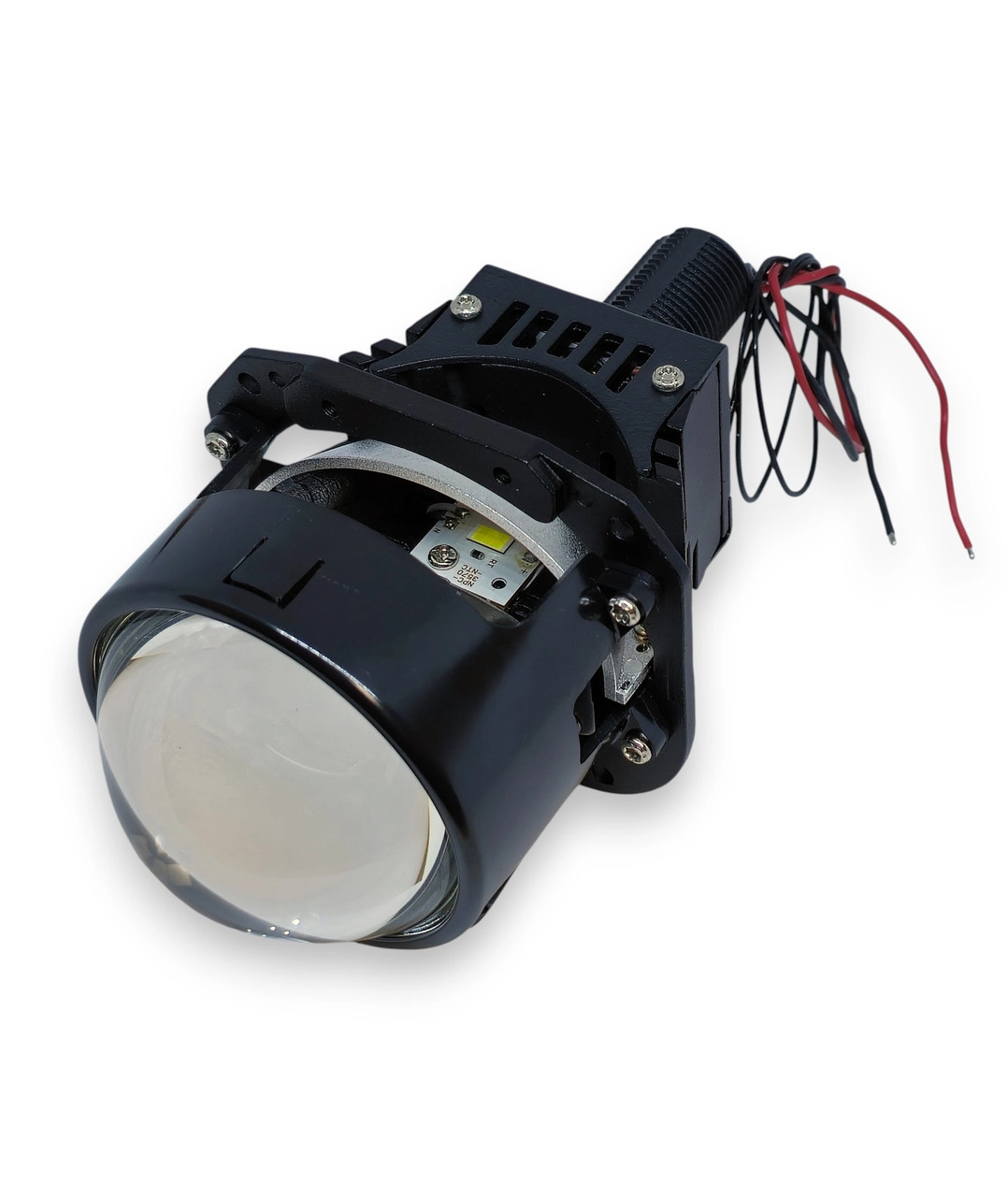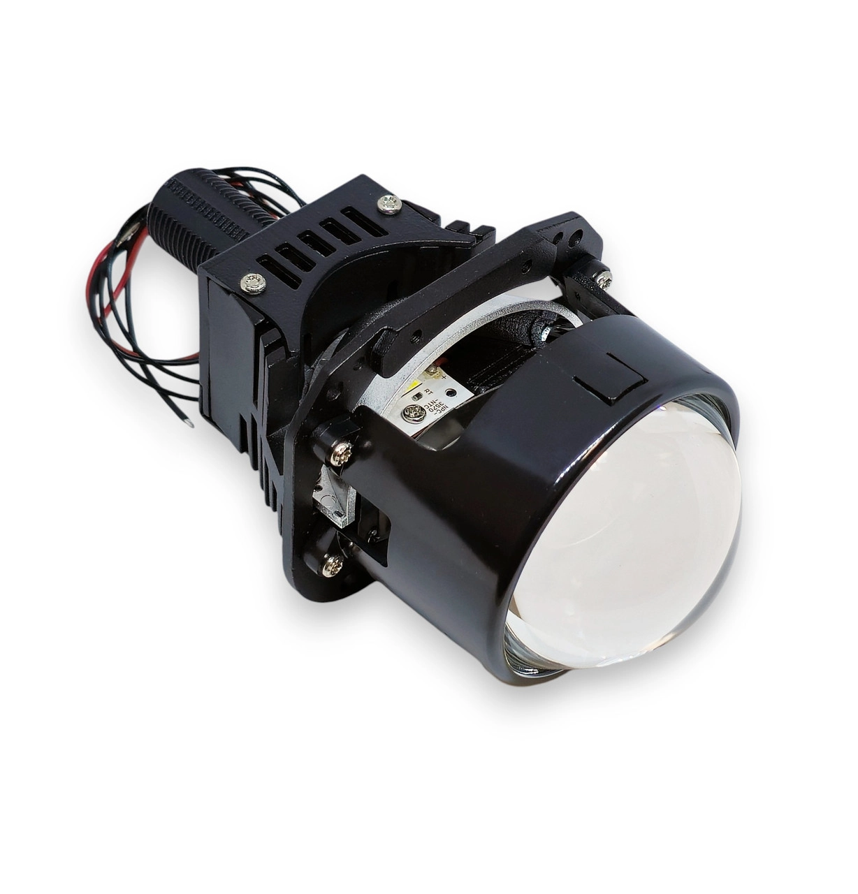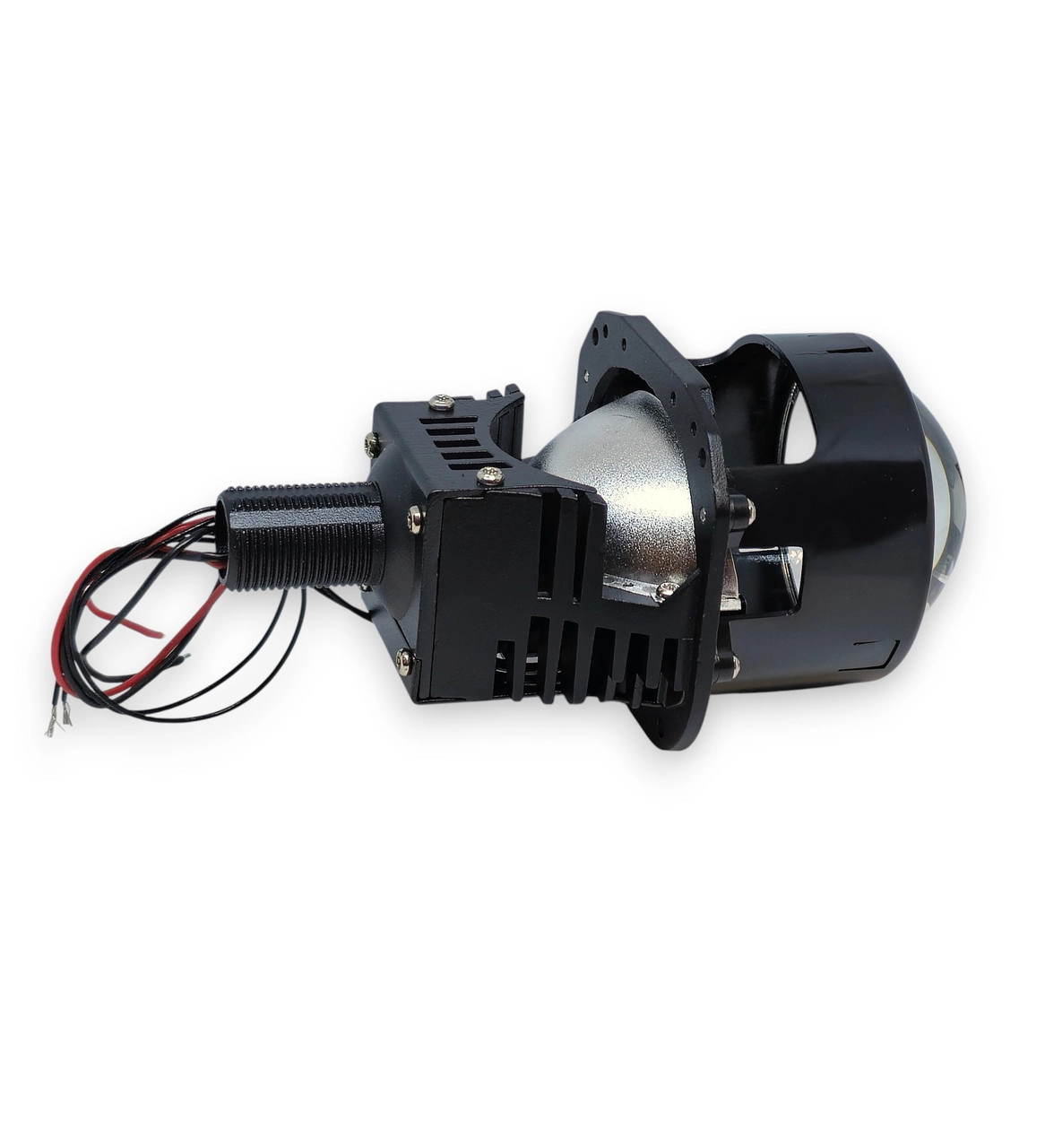 Характеристика: Розмір: 2,5 дюйма (63 мм мм) Напруга: 12V Потужність: 60W Температура світла: 5500К Матеріал лінзи: кварцове скло; Матеріал: алюміній; Установка: Замість штатної лінзи Габаритні розміри: Загальна довжина лінзи – 150 мм, Довжина від центральної кріпильної частини до скла лінзи – 70 мм, Максимальна ширина модуля – 85 мм. Переваги: Відбивач ближнього світла є точним і більшим за розміром, що дозволяє створити широкий промінь світла, відбивач далекого світла менший за розміром і призначений для зосередження світла в дальньому промені, забезпечуючи проекцію на велику відстань; Система охолодження складається з кулера для активного охолодження та алюмінієвого корпусу-радіатора, які спільно забезпечують ефективну систему охолодження модуля; Наявність інтелектуальної системи контролю за температурою.