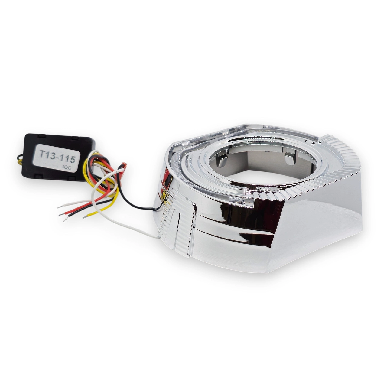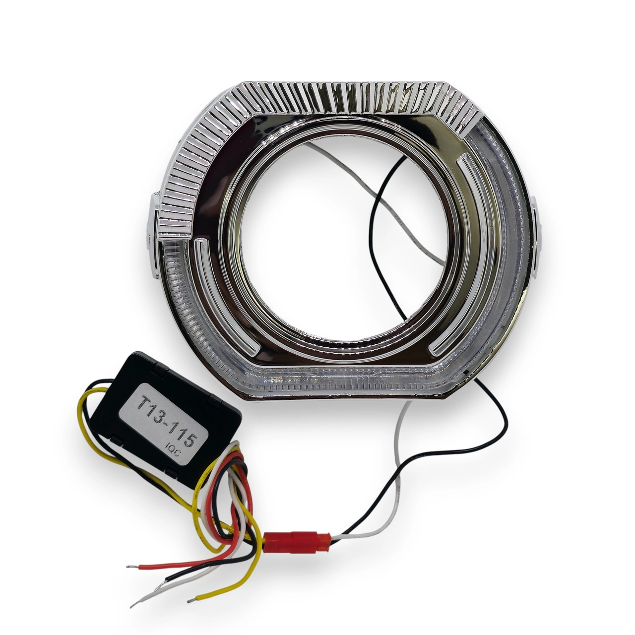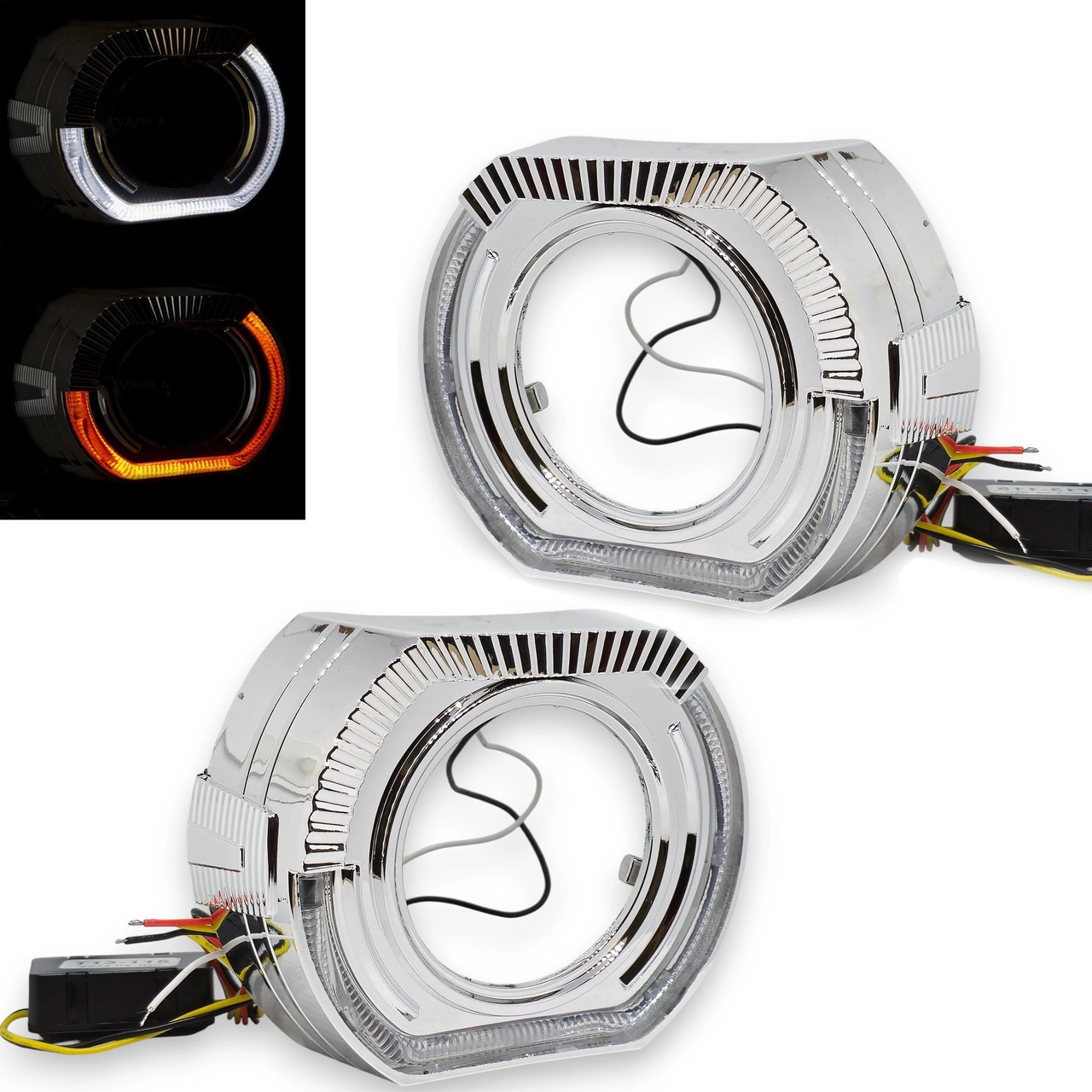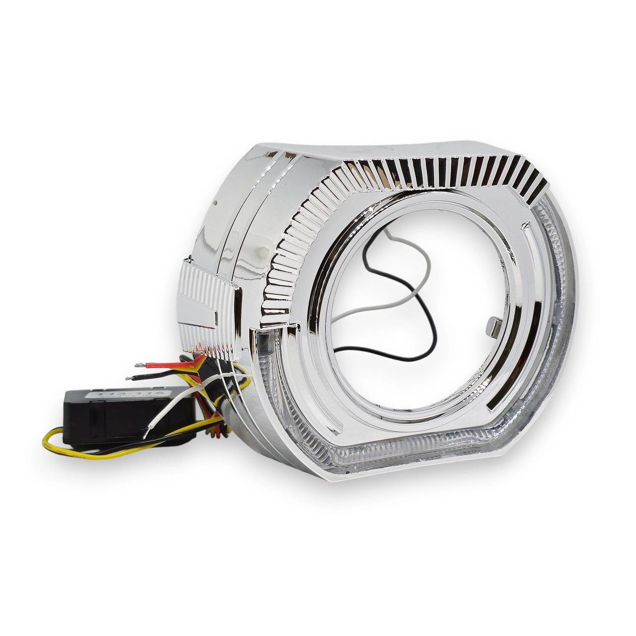 Маска для біксенонових лінз 3″ YT-61 BMW Sport LED габарит поворот Білий Жовтий комплект
