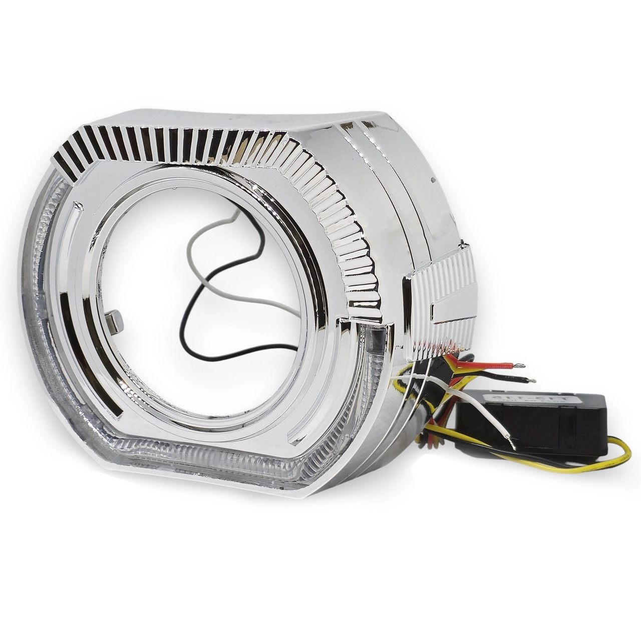 Характеристики: Маска для встановлення з біксеноновою лінзою; Діаметр – 3.0 “; Сторона: ЛІВА + ПРАВА Джерело світла: два двокольорові світлодіоди CREE; Особливості: Зовнішній контролер; Підключення 4-х провідне; режим приглушення яскравості (при підключенні білого дроту до +12В); режим повторювача поворотників (при підключенні жовтого дроту до +12В повторювачів); Робоча напруга: 10-16V; Ціна вказана за комплект
