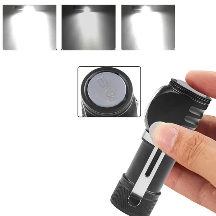 Характеристика: Матеріал: алюмінієвий сплав + АБС-пластик Перемикання: натисканням кнопки Акумулятор: акумулятор 16340 ємністю 700 мА·ч Спосіб заряджання: заряджання через USB-порт Type-C Режим 3: сильне світло – слабке світло – подвійний спалах Режим масштабування: фіксований фокус Ступінь водонепроникності: IPX4 Світловий потік: 500-600Lm Дальність дії: 100-200 метрів Час зарядки: 4-5 годин Термін служби акумулятора: 2-4 години Розміри: 7*2,2*2,2 см Вага: 60 ​​г