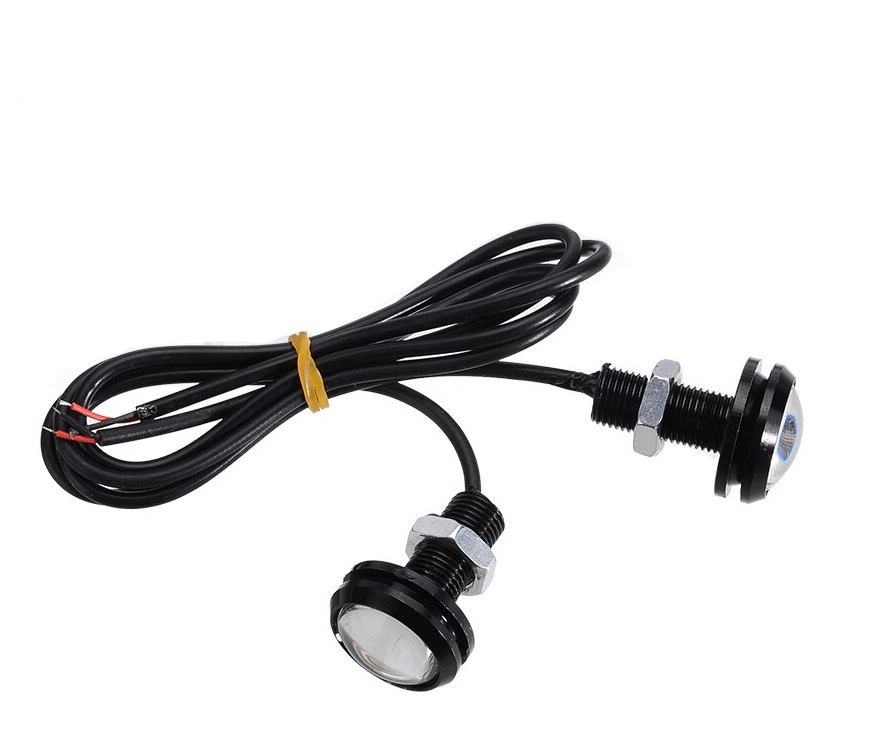 Врізні світлодіодні LED лампи-Орлине око Колір світіння: білий. Колір корпусу: чорний, срібло. Матеріал корпусу: алюміній Можуть застосовуються для організації підсвічування як в автомобілі, так і в побуті. Потужність: 5Вт, 110Lm, Напруга: 12 В Номінальний робочий струм: не більше 300 мА Ціна за 1 шт. Діаметр 23мм. Довжина проводу 55 див. Різьба М10