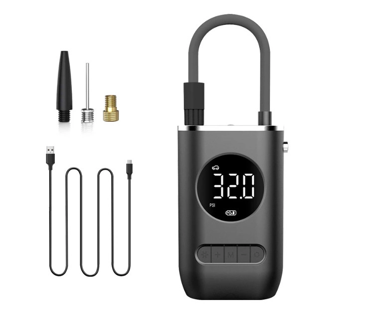 Працює компресор CZK-3668 від акумулятора і є повністю портативним. Він займає мінімум місця і відмінно підходить для надування шин, м’ячів і матраців та ін. Включається одним натисканням і за лічені хвилини колеса машини будуть повністю накачані. Автоматично вимикається після накачування. Автокомпресор оснащений ліхтариком. Характеристика: Матеріал: АБС Струм: 10А Напруга: 7,4 В Потужність: 50 Вт Потік тиску повітря: 25 л/хв Тип джерела живлення: TYPE-C Довжина шнура живлення: 0,8 метра Довжина надувної труби: 0,5 м Розміри: 89*47,5*137мм