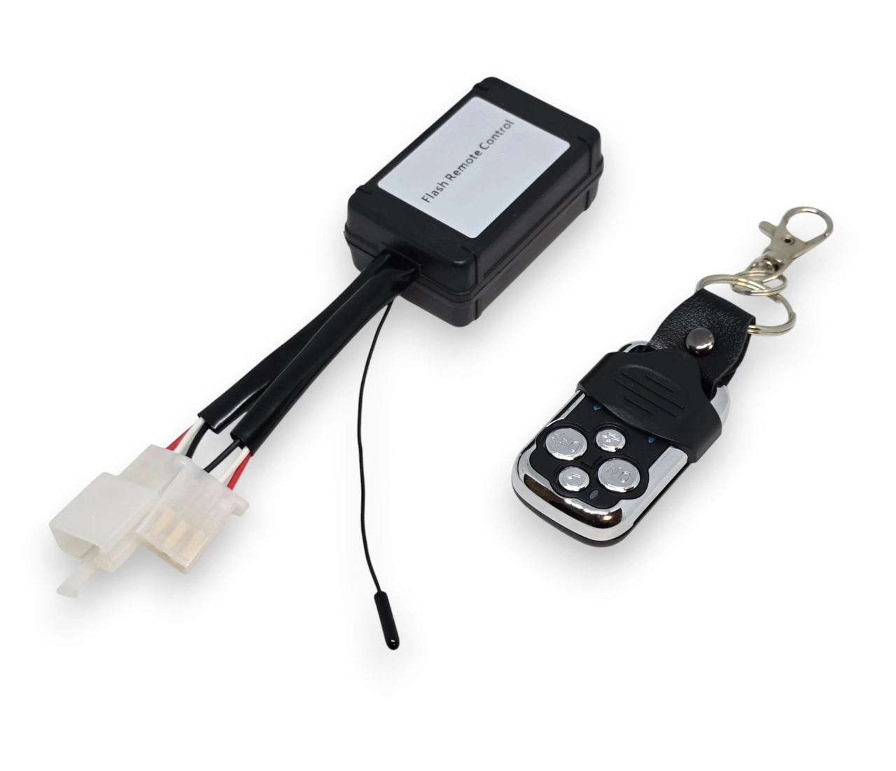 Пульт дистанційного увімкнення світла фар з режимом стробоскопа 9-12V (підключається лише через реле) до проводки підходить без переробки. Характеристика: Матеріал: АБС Призначення: контролювати частоту миготіння світлодіодів. Робоча напруга: 9 ~ 16 В Відстань дистанційного керування: прибл. 80~100 метрів Вилка: 3 контакти Потужність: 2,4W Розмір блоку: 63мм*39мм*1,5мм