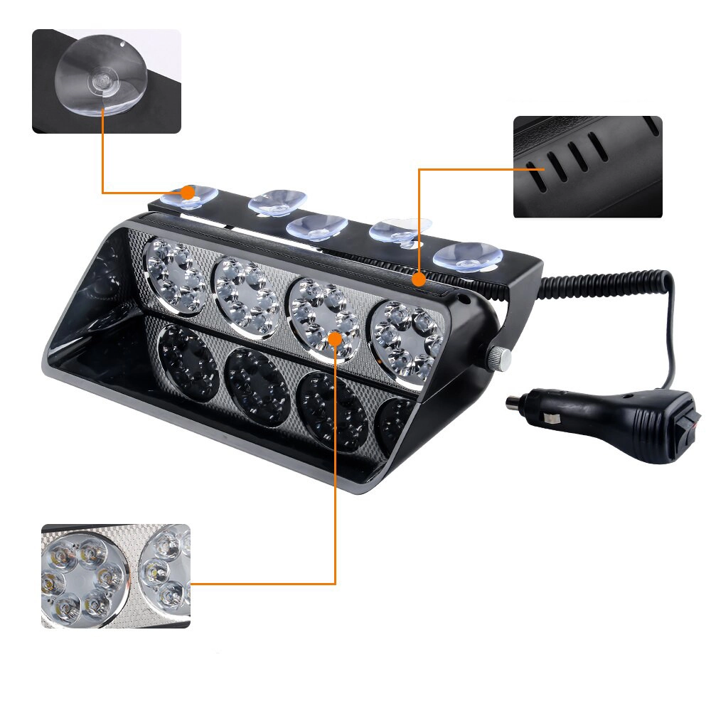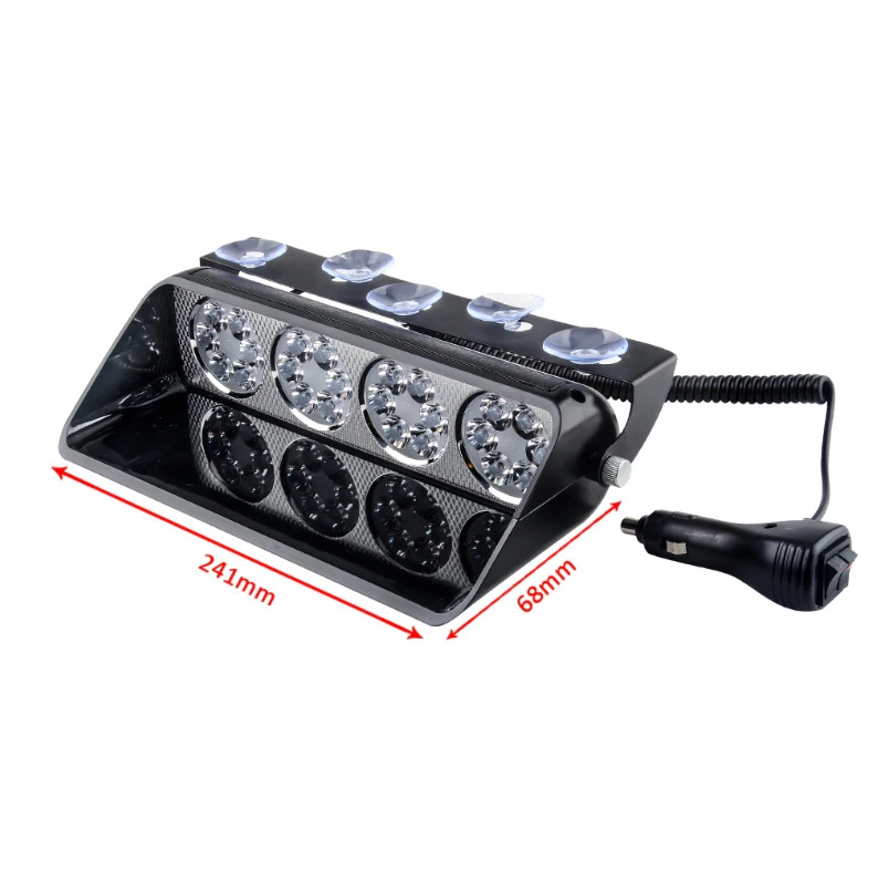 Характеристики: Призначений для позначення спецтранспорту на дорозі, є попереджувальним сигналом. Кріпитися на скло, харчування від прикурювача. Модель має 4 розділені секції, кожна з яких оснащена 6 світлодіодами із спеціальним оптичним розсіювачем. Який створює дуже яскраве, спрямоване світло. Напруга: 12 V; Потужність: 24W; Кількість світлодіодів: 24; Колір: Синій – Червоний, Білий Довжина дроту живлення: 0.5 – 1.5 м; Розміри: 214*68*140мм Матеріал: пластик