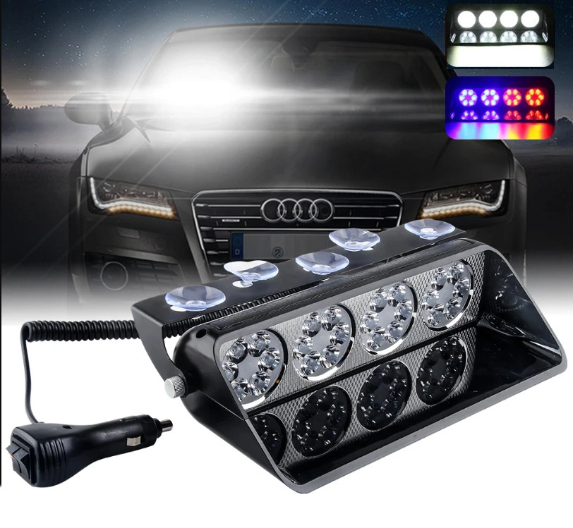 Стробоскоп мигалка. Світлодіодний попереджувальний сигнал на лобове скло у прикурювач Червоний Синій Білий