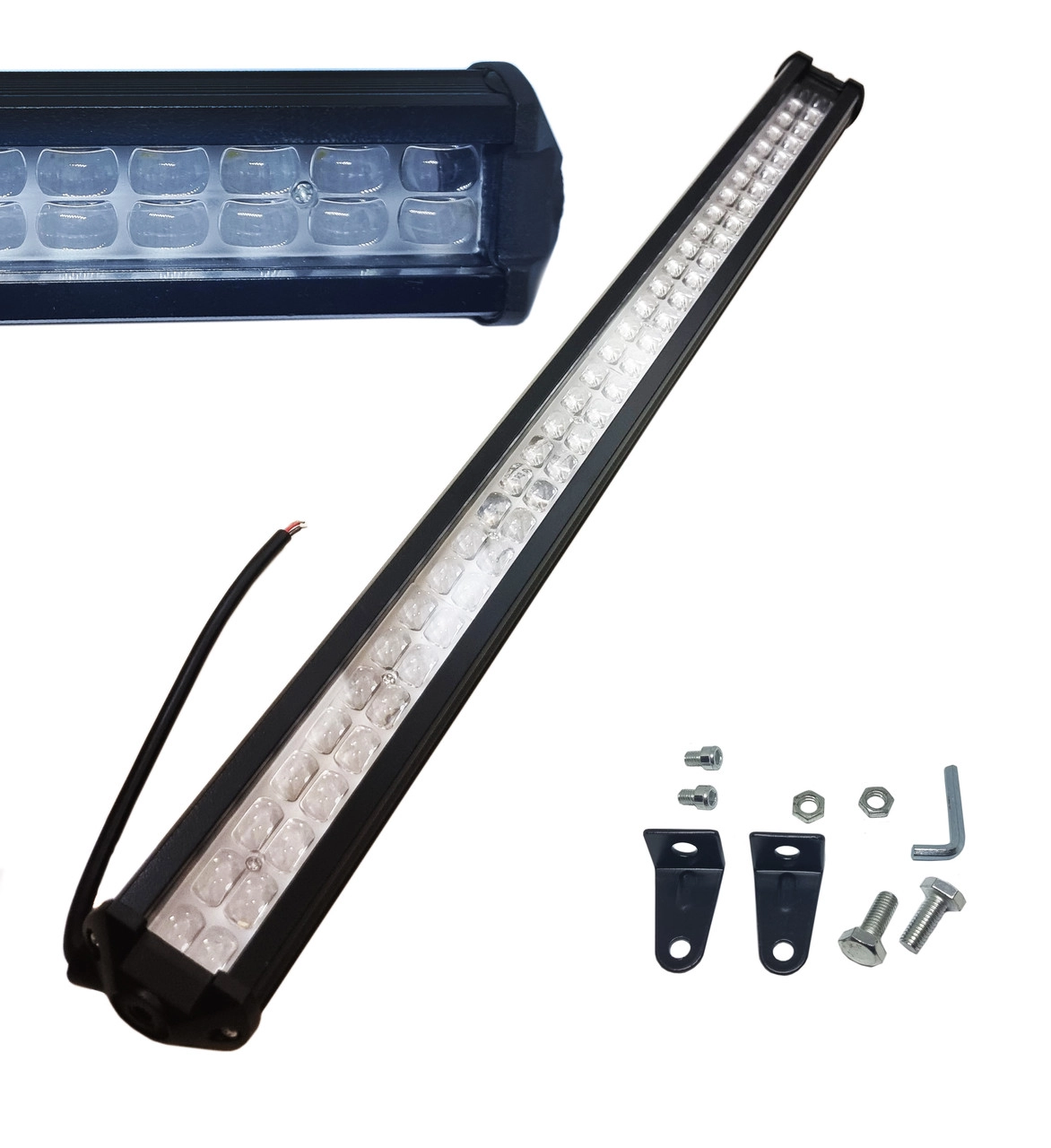 Характеристики: Вид: додаткові фари Тип: Далеке світло Модель: Cl Кількість діодів: 64 Температура кольорів: 6000 K Потужність: 192Вт Напруга: 9-36V Колір світіння: Білий Розмір: 65*5см Температура кольору: 6000K білий Матеріал: литий під тиском алюмінієвий корпус Комплектація: балка + кронштейн Ціна вказана на 1 шт