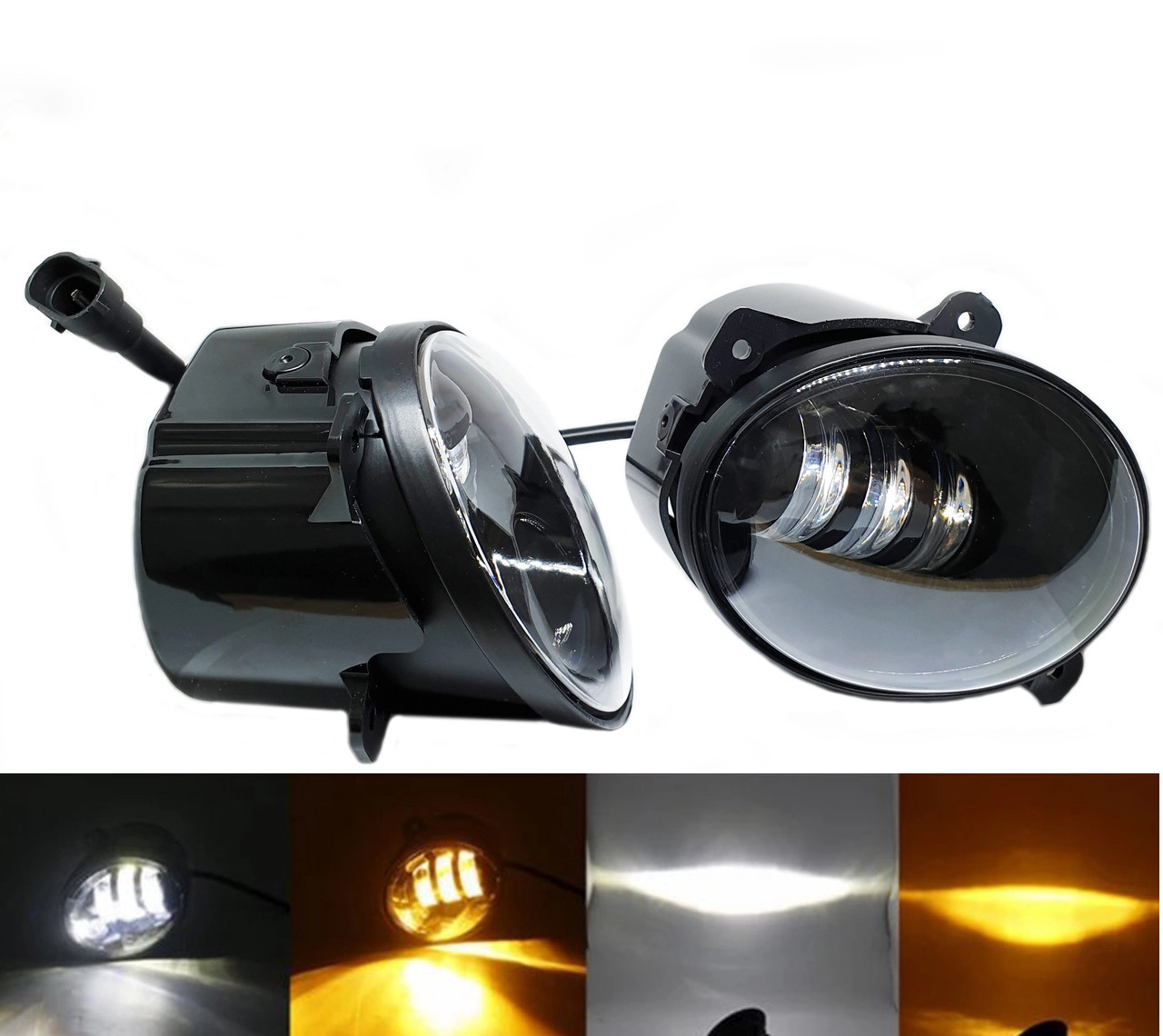 Штатно підходять для Лада Калина, Грант. Противотуманки встановлюються в штатні місця і світловий пучок світить яскравіше заводського ближнього світла, а також має правильну светотеневую кордон (СТГ), за формування якої відповідають 3 діодні лінзи в кожній фарі, тому вони не зліплять зустрічний рух. Характеристики: – Кількість лінз в фарі: 3 – Потужність: 30 Вт – Робоча напруга: 12-24V – Водонепроникність: стандарт IP67 – Колірна температура – 5000K Діаметр фари 90мм – Колір: БІЛИЙ/ЖОВТИЙ Яскраве свічення за рахунок застосування світлодіодів cree. Чи не сліплять зустрічних, так як мають чітку светотеневую кордон: (СТГ) Активуючи ви отримаєте хороший якісний світло. А світло це безпека руху