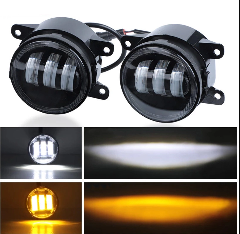 Світлодіодна двокольорова балка протитуманна, додаткова фара Led кругла 90мм 3,5″ Білий Жовтий комплект