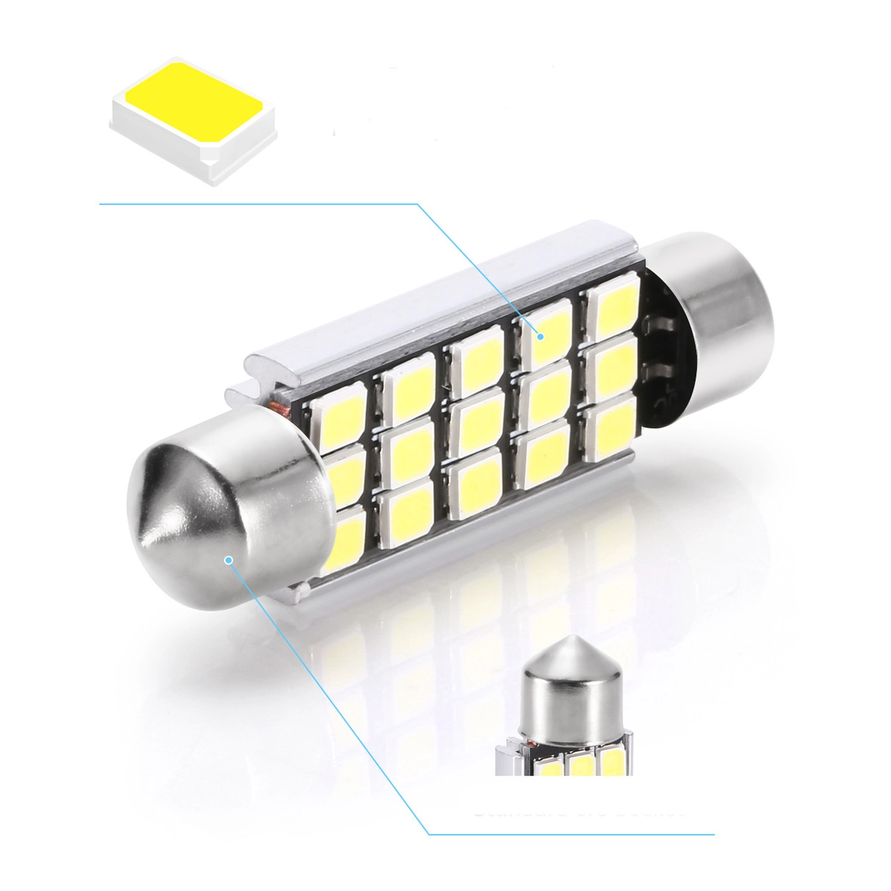 Цоколь: Festoon Тип діода: 4014 Кількість діодів: 12 Колір світіння: Білий Напруга живлення: 12V Розмір: 41мм Світловий потік: 360 Lm