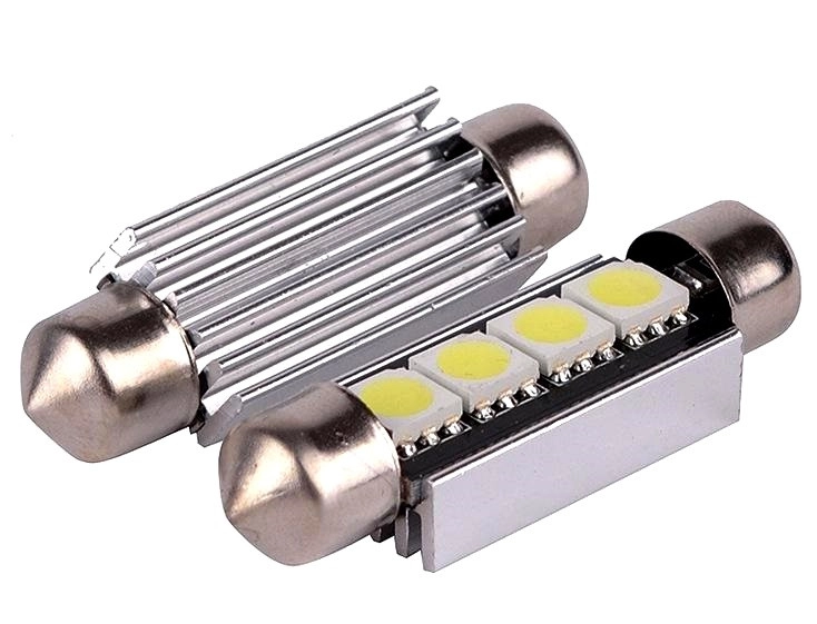 Цоколь: Festoon Тип діода: 5050 Кількість діодів: 4 Колір світіння: Білий Світловий потік: 56Lm Напруга живлення: 24V Розмір: 39мм Особливості: з обманкою і радіатором