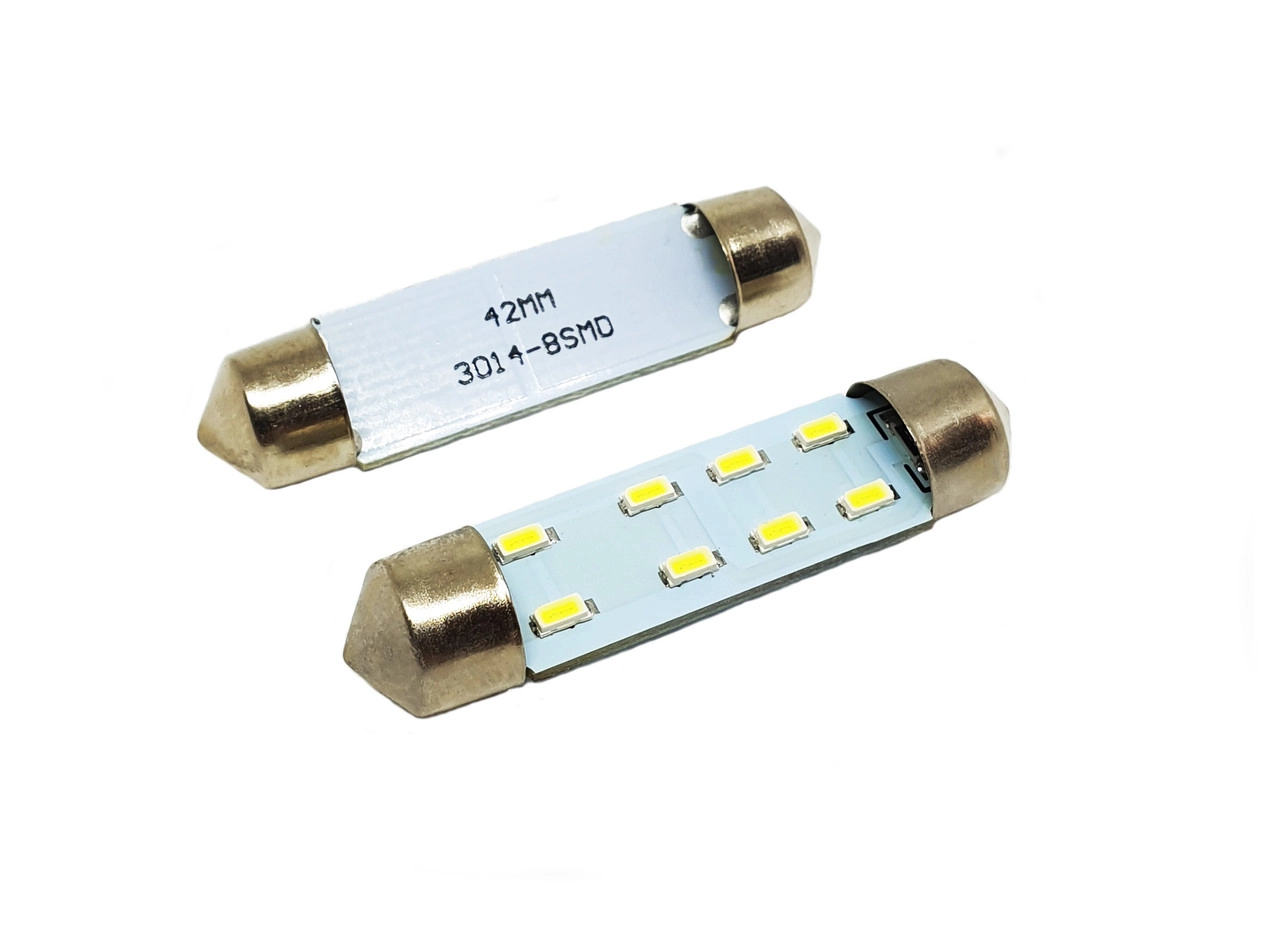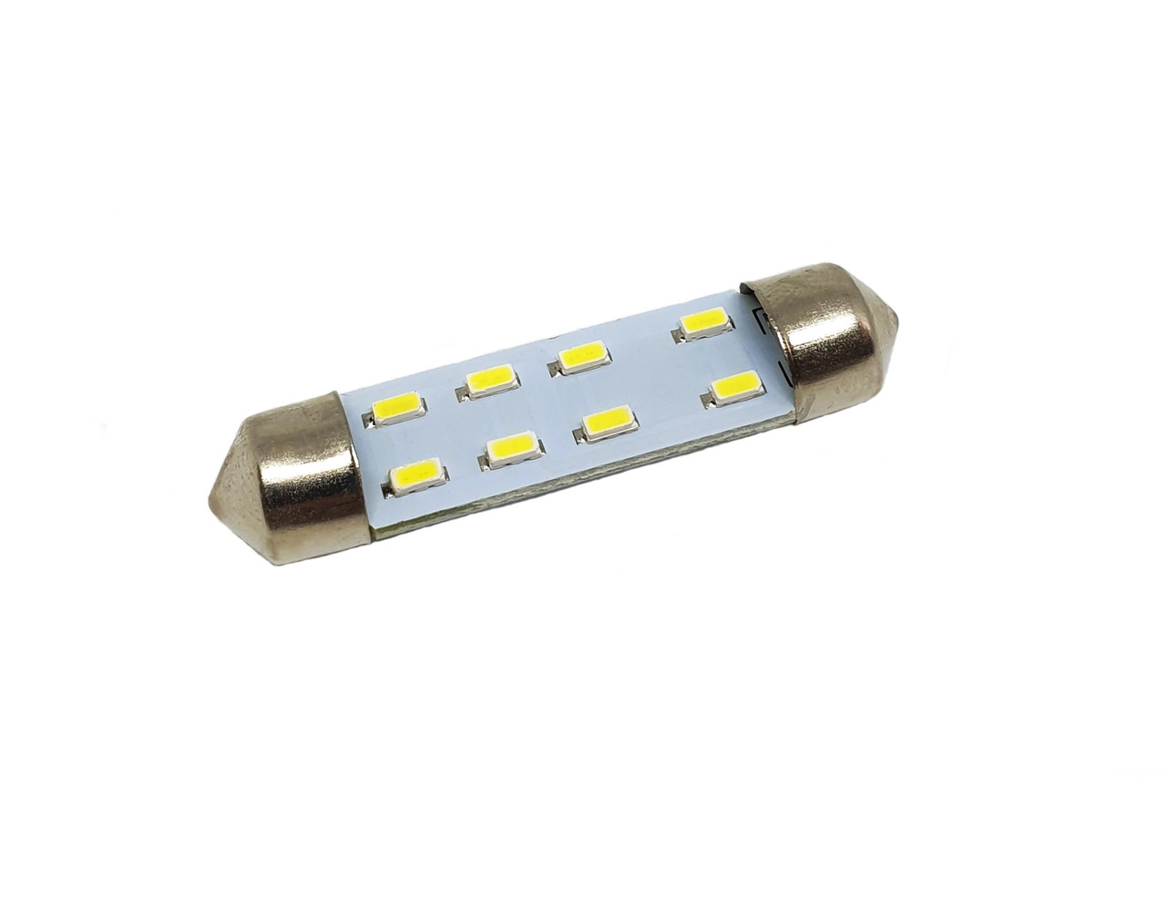 Цоколь: Festoon Тип діода: 3014 Кількість діодів: 8 Колір світіння: Білий Напруга живлення: 12V Розмір: 41мм Світловий потік: 80Lm