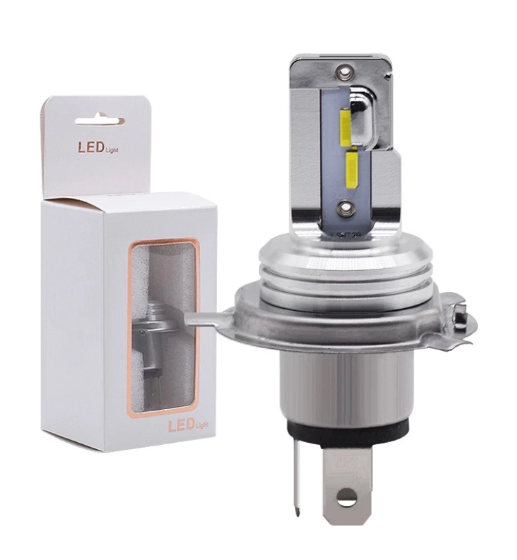 Характеристика: Тип роз’єму: H4 Потужність: 18 Вт / лампа Люмен: 1750LM / лампа Напруга лампи: AC11V-48V, DC11V-60V Джерело світла: CSP 1860 Chip Матеріал корпусу: алюмінієвий сплав високої щільності Колірна температура: 6000K-6500K Білий Кожна лампочка має супер яскравий LED чіпсів Подвійна керамічна підкладка з чіпа CSP LED стійка до більш високих температур, має більш міцну ізоляцію і поліпшення продуктивності стабільності, це робить стабільну яскравість світлового потоку і продовжує термін служби! У комплект входять: 1 LED Лампа